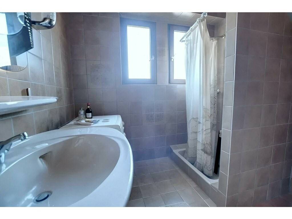 Dès l'entrée, un couloir dessert la salle de douche, le salon et la cuisine.