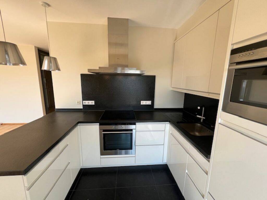 Pour ce qui est de la cuisine équipée (ouverte à la pièce principale ; mais est toute de même nichée à l’écart), sachez qu’elle est équipée plus que standard. Elle comprend un réfrigérateur avec un compartiment congélateur séparé, un four, micro-ondes, une plaque de cuisson vitro-céramique (avec la hotte au-dessus), un lave-vaisselle… (L’espace de la cuisine est de 7,30 m2.)