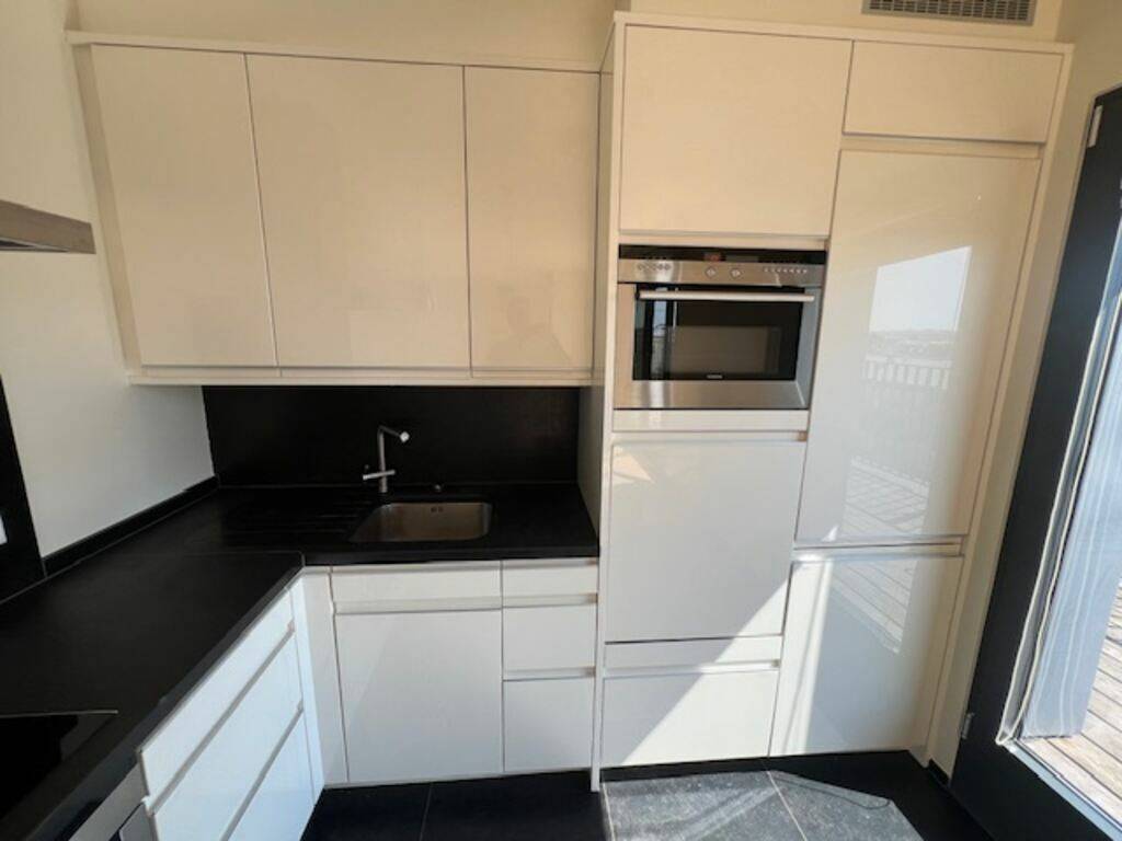 Vu que le principe même de l’appartement de ce type sis au dernier étage est qu’on peut sortir vers des extérieurs qui surplombent l’immeuble, ceci veut donc dire que lorsqu’il fait beau, votre habitation de 83 m2 est prolongée encore par 36 m2 de balcons (l’exposition au soleil est idéale). On y accède depuis toutes les pièces de l’appartement.