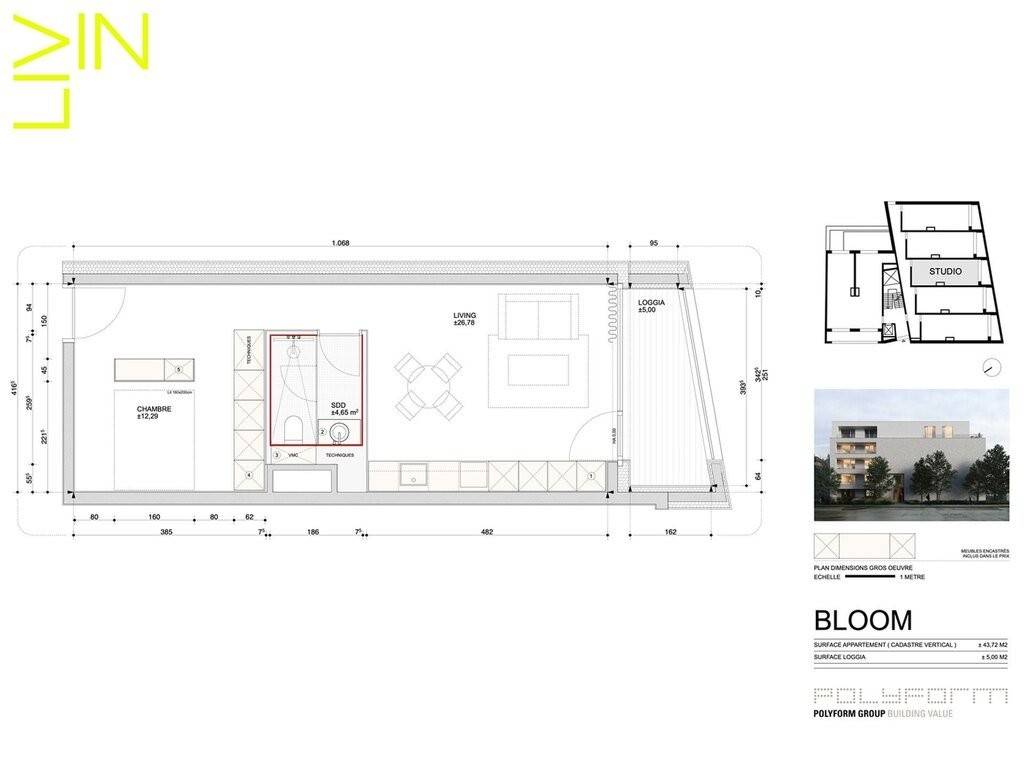 À vendre, magnifique studio de 43,72m2 (surface nette habitable) dans la résidence BLOOM en future construction.