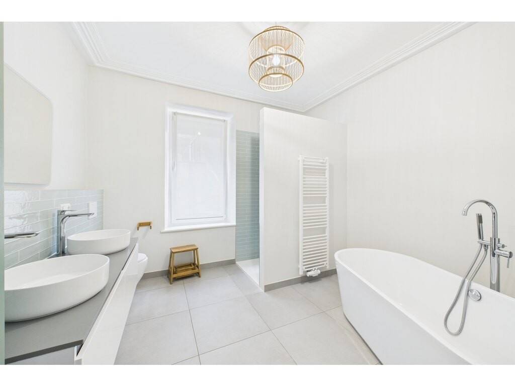 This old house, renovated in 2020 and 2022, is ideally located, equidistant from the city centre and Kirchberg, in the immediate proximity of the future footbridge that will connect the Cents plateau and Rue de Neudorf to the Kirchberg plateau. Its historic character is evident in its mouldings, solid wood flooring, period staircase and high ceilings of over 2.90 m.
