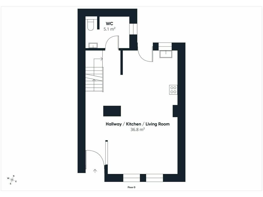 Grounds floor: entrance hall, living/dining room, kitchen (36.8 sqm) - separate WC/laundry room (5.1 sqm)