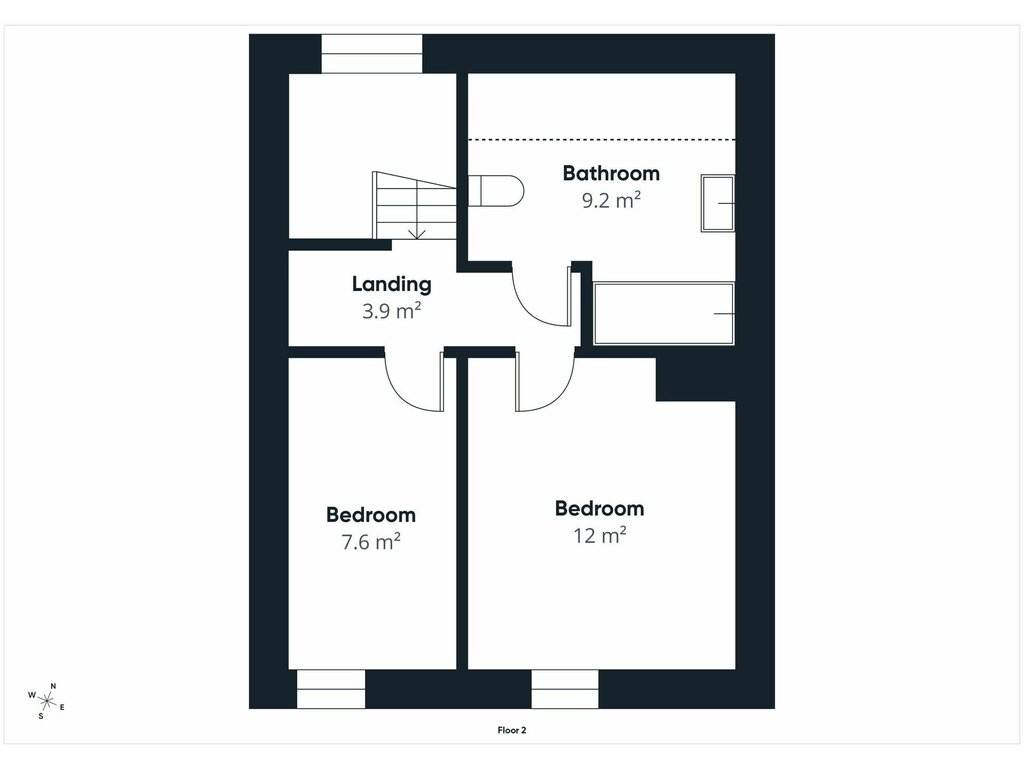 2nd floor: landing (3.9 sqm) - 2 bedrooms/study (7.6 sqm and 12 sqm) - bathroom (9.2 sqm)