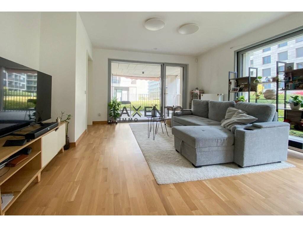 The 55m2 apartment is located on the groundfloor and is equipped with top-of-the-range finishes, a ventilation system, triple glazing, a home automation system and electric shutters.