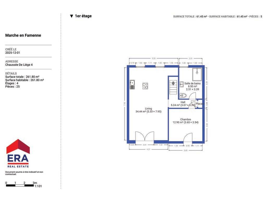 ERA B-LUX vous propose, en plein cœur de Marche-en-Famenne, cet immeuble mixte de caractère à vendre, alliant une surface actuellement occupée comme restaurant (possibilité de bureau, commerce, …) et un appartement duplex moderne de 140 m², le tout ayant bénéficié d’une rénovation de haute qualité.La surface commerciale, répartie sur deux niveaux, se compose au rez-de-chaussée, de deux salles de réception, d’un espace cuisine professionnel et d’une grande terrasse idéale pour l’accueil de la clientèle. Le niveau inférieur comprend deux salles de réunion, une réserve, une cave à vin, un second espace cuisine ainsi qu’une chaufferie. Un espace extérieur supplémentaire complète l’ensemble et peut être aménagé en terrasse additionnelle.Le duplex moderne et lumineux, propose un espace de vie comprenant une cuisine full équipée ouverte sur la salle à manger et le salon. Il dispose également d’une salle de douche, de trois grandes chambres, d’un bureau et d’une grande terrasse, parfaite pour profiter de moments de détente en extérieur.Un bien rare, idéal pour un projet professionnel combiné à un logement de qualité ou pour un investissement à fort potentiel.Intéressé(e) ? Contactez l’agence ERA BLUX au 084/311.888 pour plus d’informations ou pour organiser une visite !