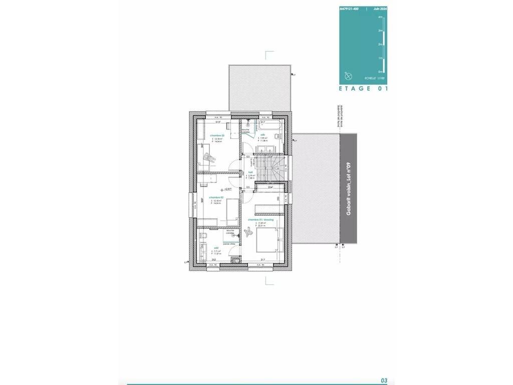 LOT 10: single-family house attached by the garage on a 6.37 ares plot with a living area of +/- 131 m2 and a total area of +/-166 m2 comprising: