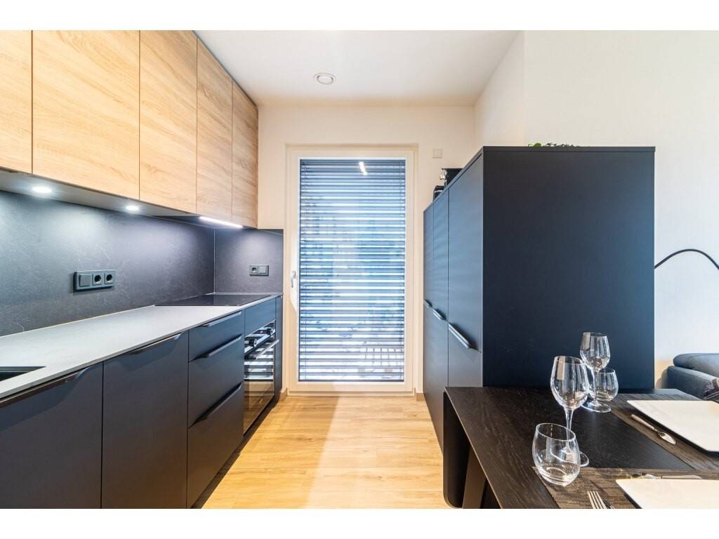 Distribution : hall d'entrée - cuisine entièrement équipée (appareils électroménagers de marque « Siemens », grille-pains, cafetière Nespresso, micro-ondes, ustensiles de cuisine) ouverte sur le living/salle à manger (lit escamotable 140cm, canapé, smart TV 40', aspirateur) - salle de bain avec douche à l'italienne et WC