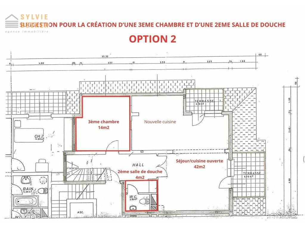 The apartment currently has 2 bedrooms and 1 shower room. It is possible to install a third bedroom of 14m² and a second shower room (see plan in the photos). An informative quote is available on request.