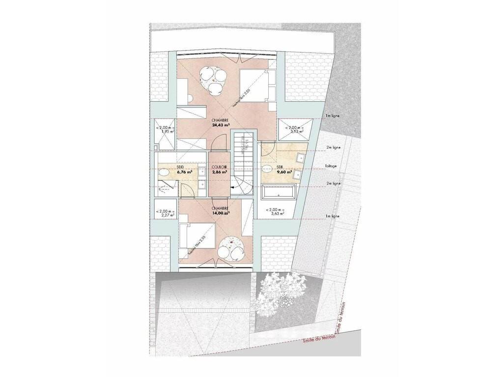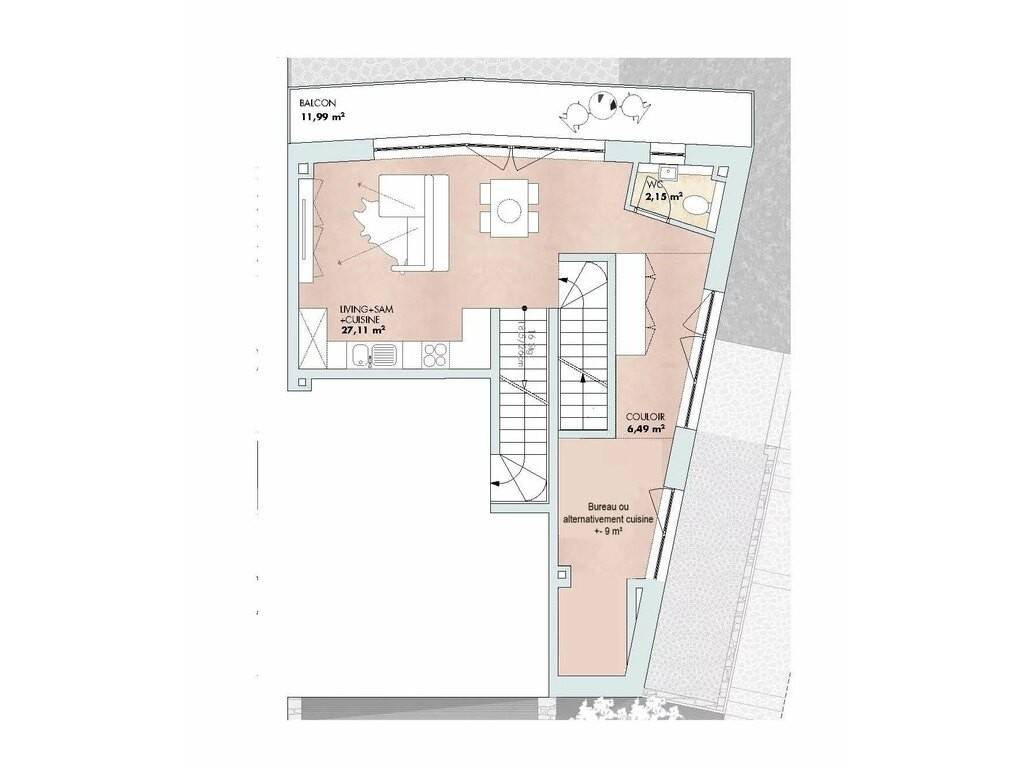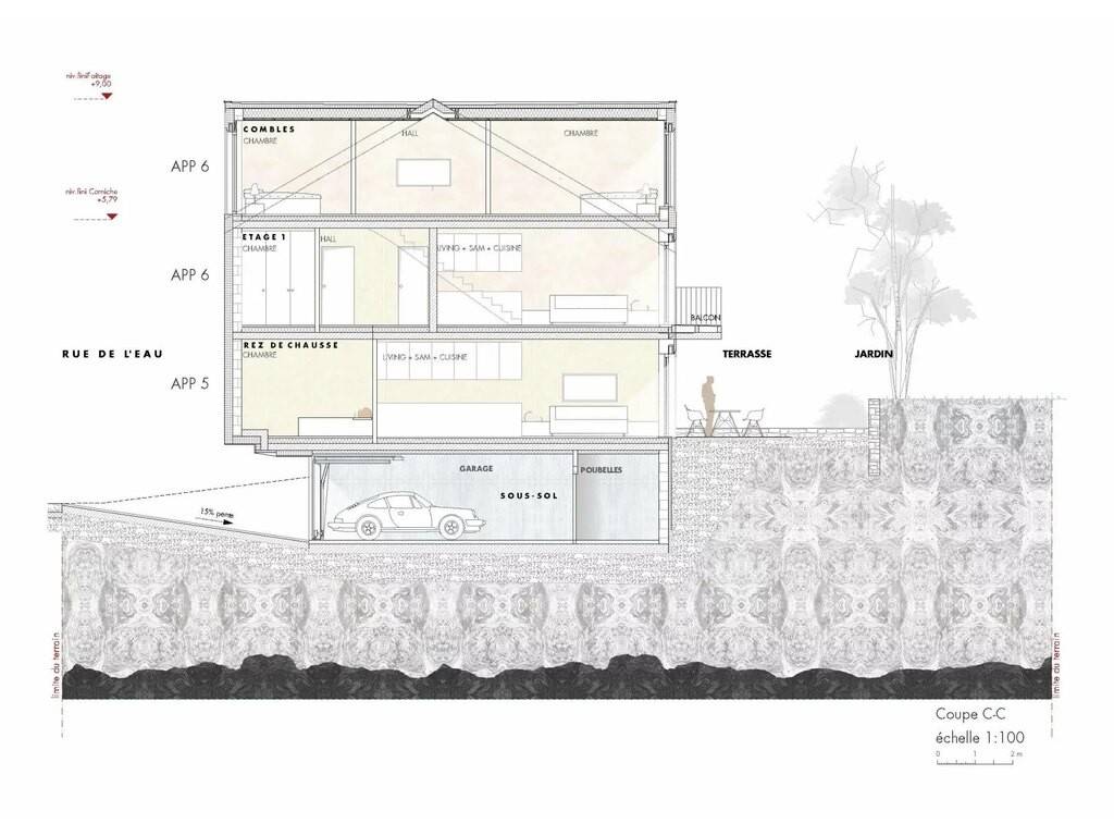 Présentation de l'appartement-triplex 06 LOT 3 Surface habitable: +- 111 m2 Rez-de-chaussée: - Hall d'entrée - Terrasse Étage: - Couloir - Bureau - espace de vie ouvert avec cuisine et accès à un balcon de +- 12 m2 - 1 WC séparé Combles: - Couloir - 2 grandes chambres à coucher (+- 24m2 et +-14m2) - 1 salle de douche - 1 salle de bains Sous-sol: - 1 emplacement de parking - 1 cave privative - 1 local poubelles - 1 local technique Extérieur: - 1 emplacement de parking devant le garage.
