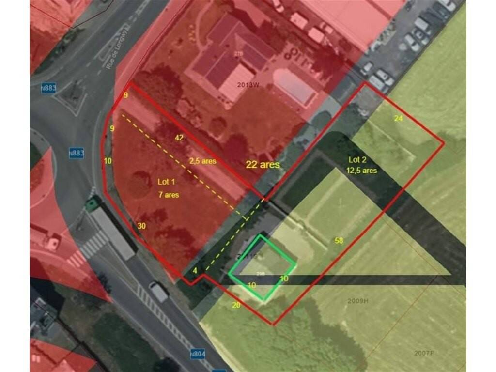SOUS-COMPROMIS - Aubange, devant le rond-point principal donnant un accès direct vers le Grand Duché du Luxembourg (Pétange), la France (Mont-Saint-Martin) et enfin le ZI d'Aubange, Century 21 Cofilux vous propose un terrain de +/- 7 ares en zone à bâtir propice pour une petite promotion immobilière de 4 logements conditionnée à l'obtention d'un permis d'urbanisme, soit le lot 1.