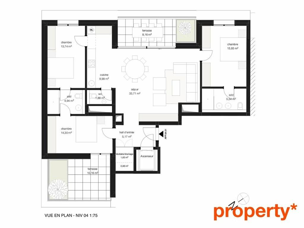 Located on the 4th and top floor of the JUCE Residence, this superb three-bedroom penthouse stands out for its generous volumes, exceptional brightness and its two beautifully oriented terraces.