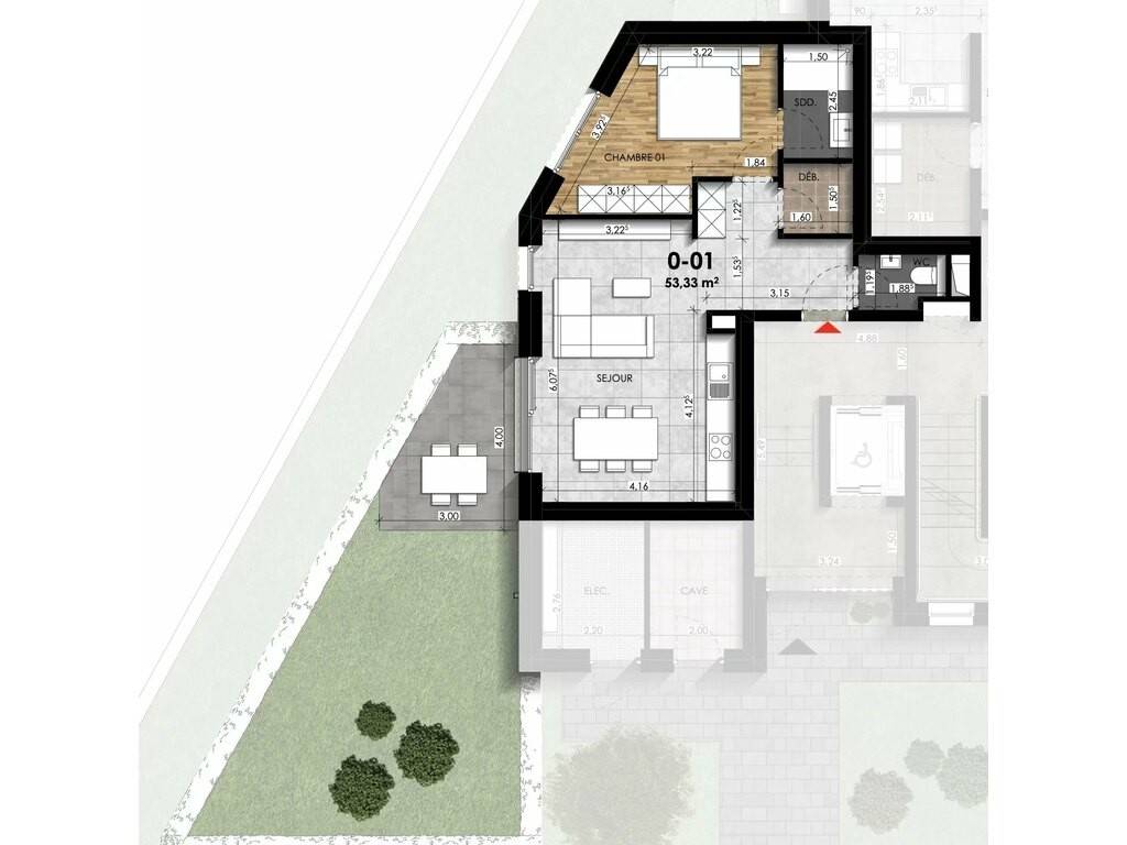 NEW HOME presents for sale, in collaboration with JANS Constructions and iPlan by Marc Gubbini Architectes, a beautiful 10-unit residence for future completion. Located on a quiet street in the Beggen district, the Elvis residence offers an exceptional quality of life while maintaining close proximity to Luxembourg City. LOT 001 - This ground-floor apartment offers one bedroom, a terrace, a private garden and a private cellar. An indoor parking space is available at an additional cost.