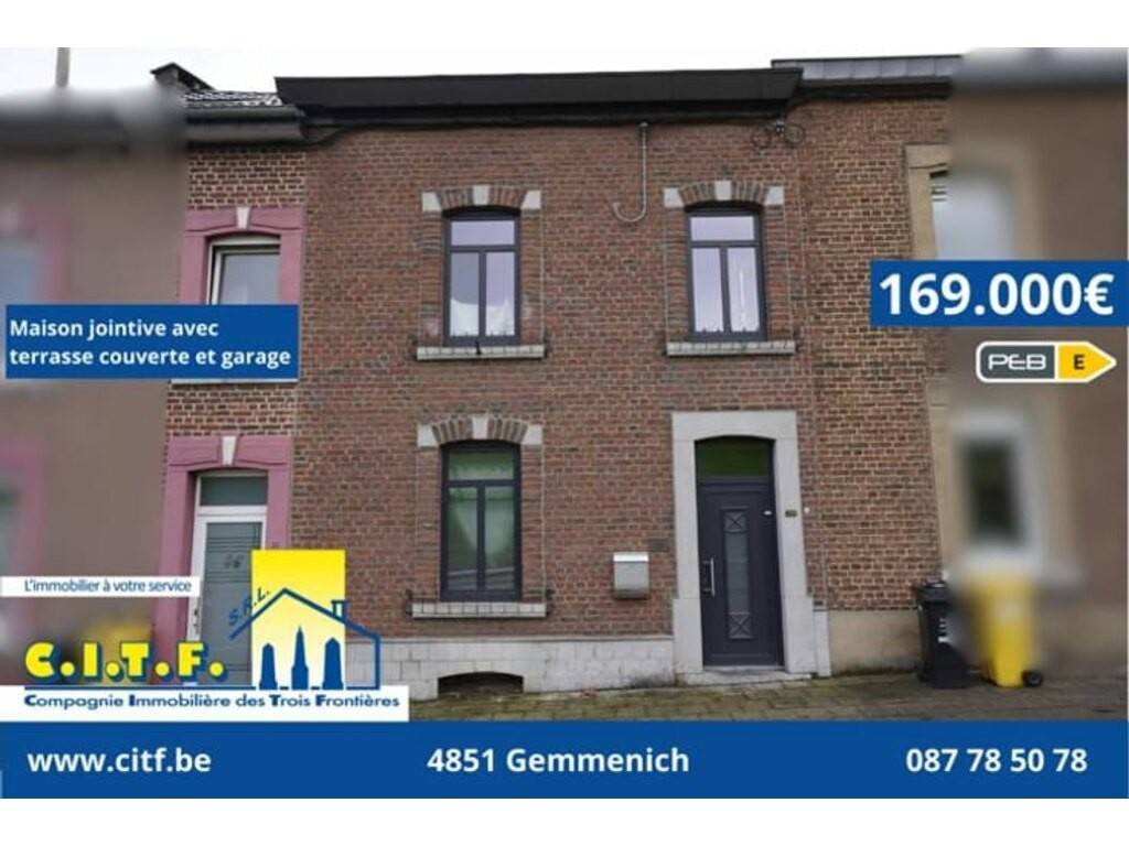 Chouette maison jointive avec terrasse couverte et garage, située rue de l'Eglise 44 à 4852 Plombières.
