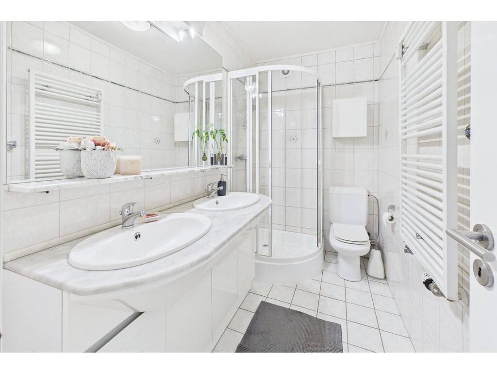 - Une salle de douche avec WC de 3,90 m² comprenant une double vasque, une douche, un WC et un sèche-serviette.