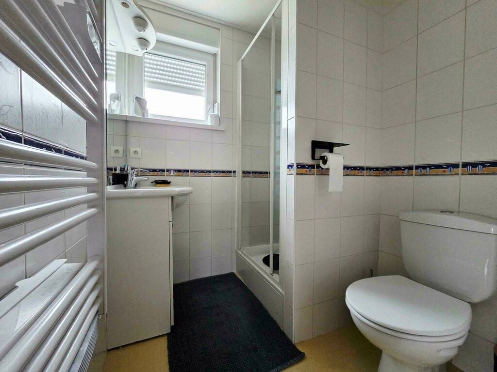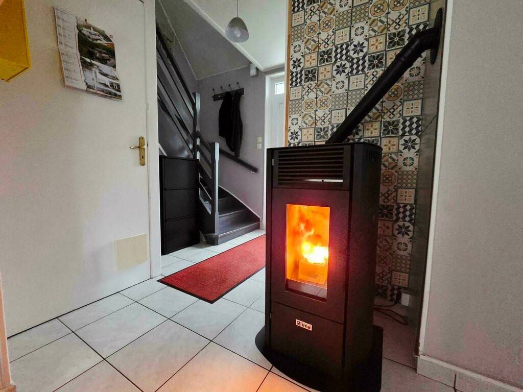 Au rez-de-chaussée, profitez d'une pièce de vie lumineuse avec un poêle à pellet, accompagnée d'une cuisine fermée et de WC séparés. La baie vitrée donne accès à une jolie terrasse et à un jardin intime, idéal pour vos repas en extérieur ou vos moments de détente.