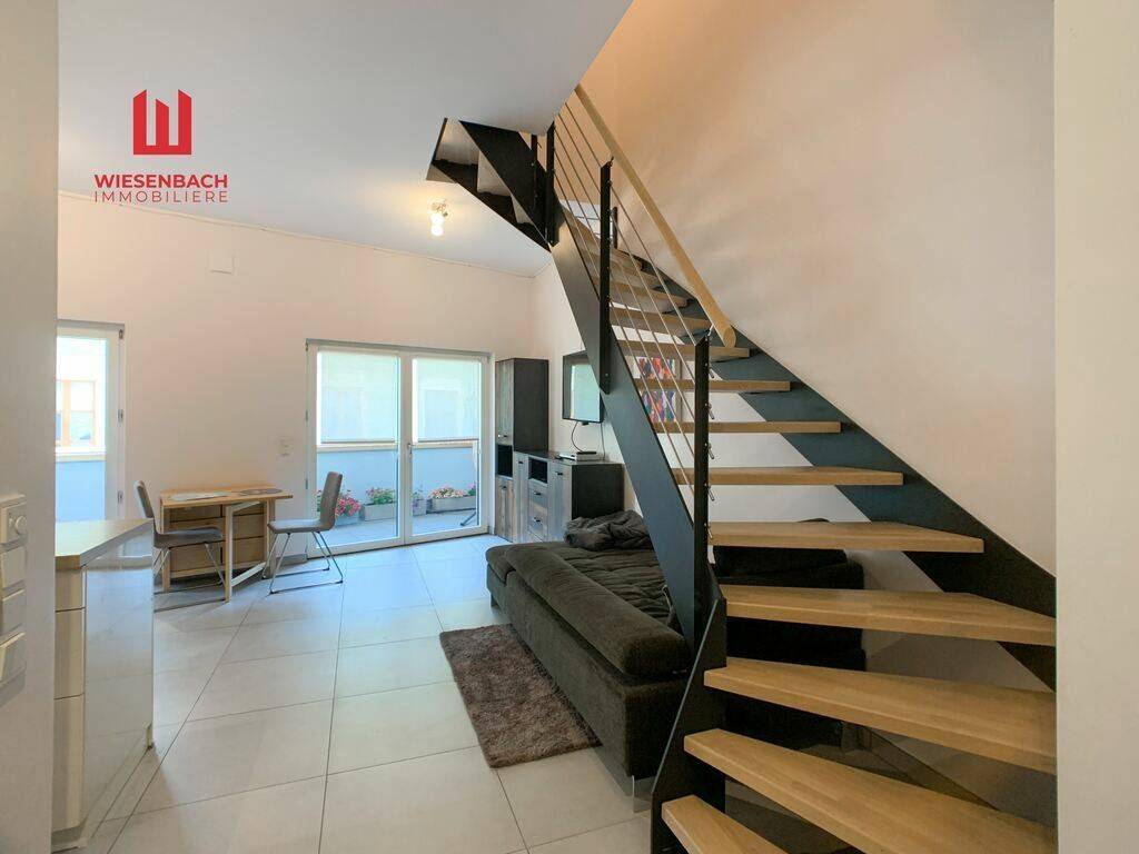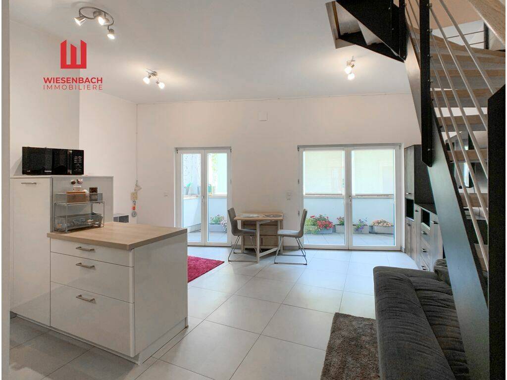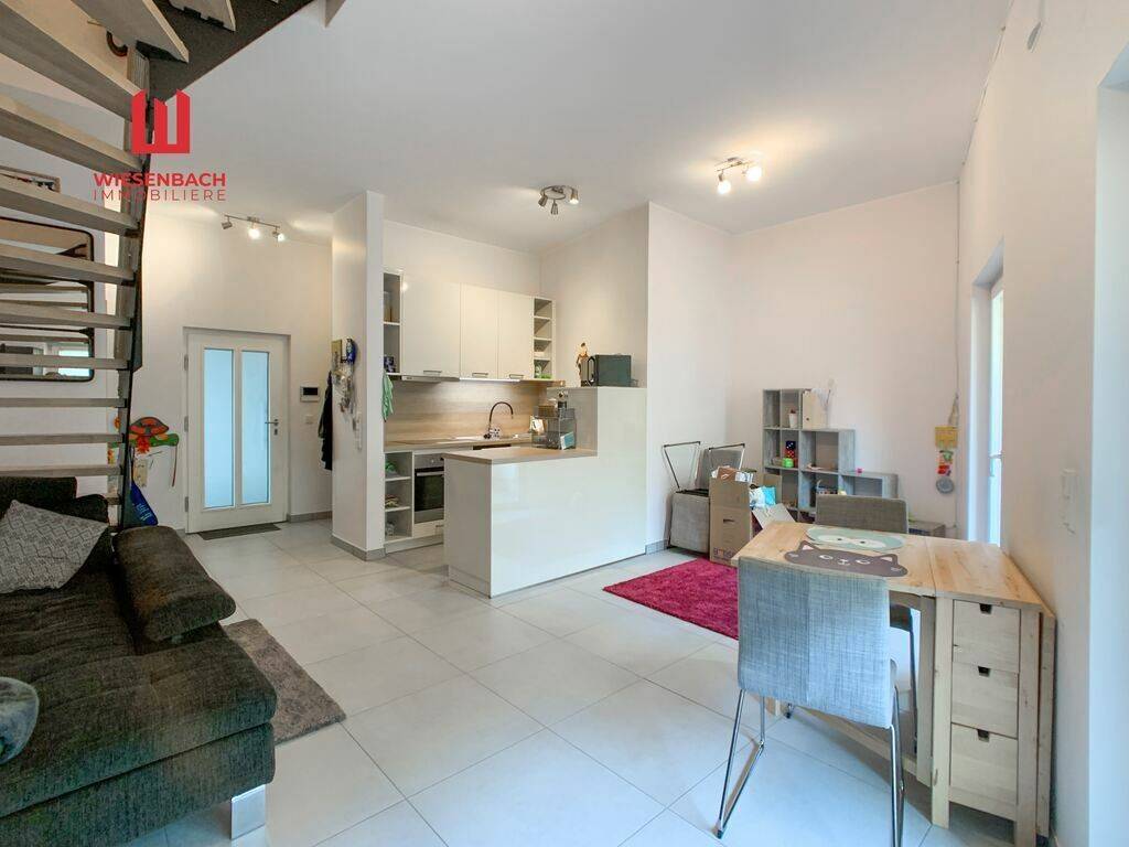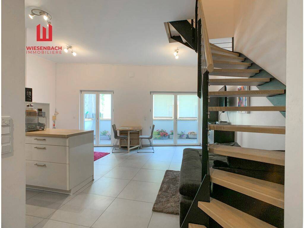 Wiesenbach Immobilière offers you a very nice duplex apartment in the city centre of Ettebruck in a residential complex built in 2017. The apartment has a living area of approx. 82.59 m2, a beautiful terrace of approx. 7 m2 and a private cellar of 4.68 m2. A parking space in the garage can be rented from another owner.