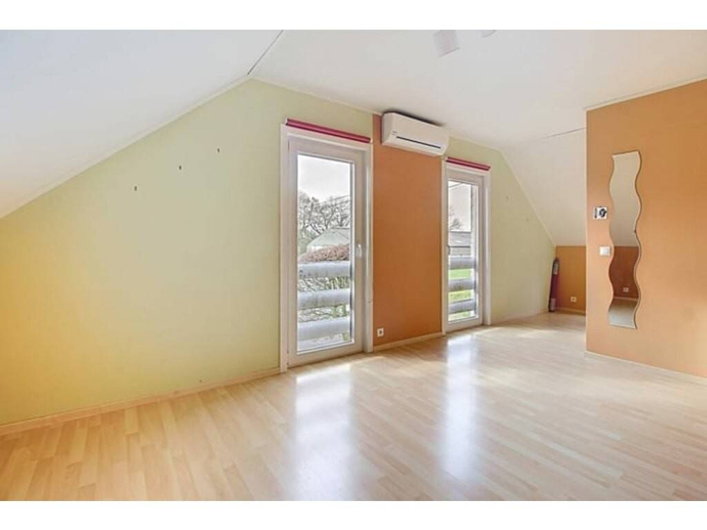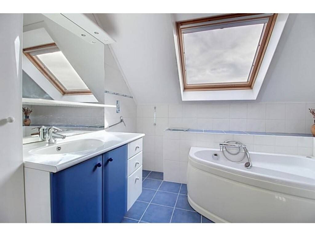 À l’étage: trois chambres, dont une très spacieuse avec coin bureau et/ou dressing, salle de bains équipée d’une baignoire à bulles et d’une douche.
