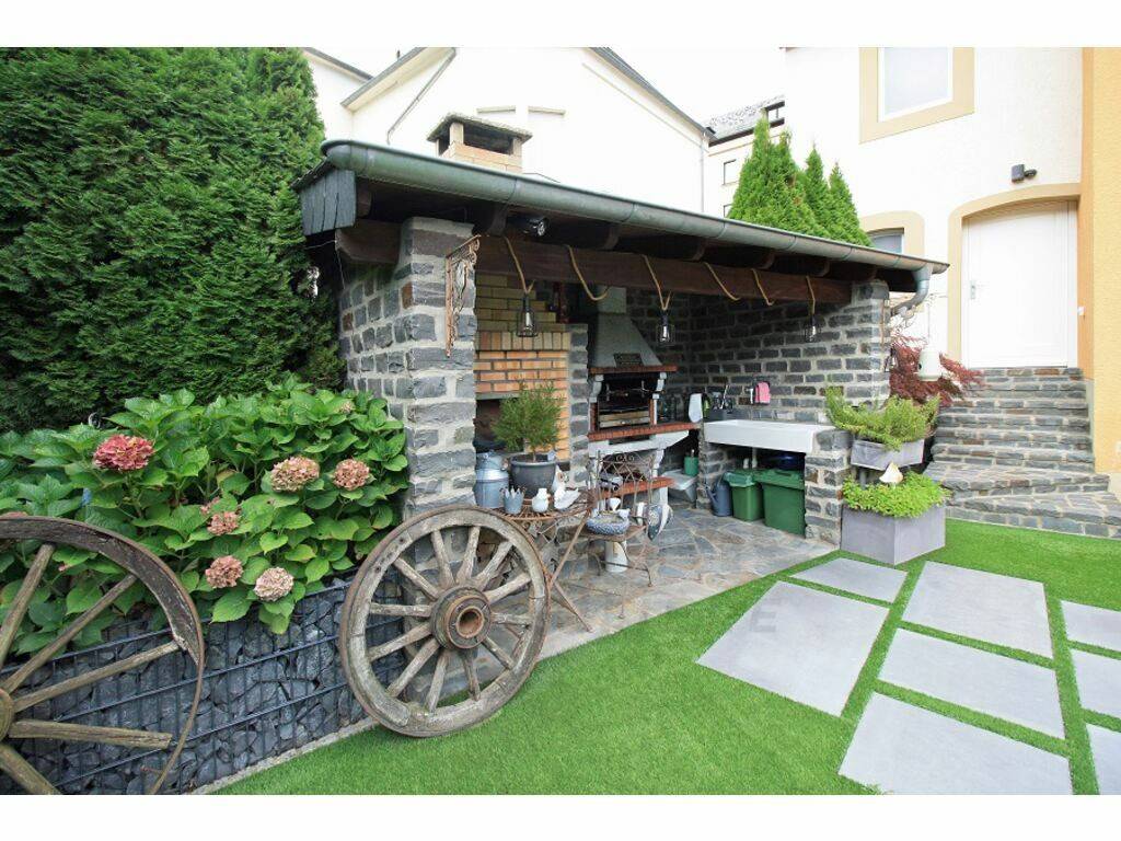 Jardin aménagé avec pergola bioclimatique et espace barbecue convivial. Environnement calme et sans vis-à-vis.