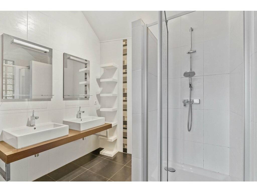The first level opens onto a bright living area featuring a lounge and open-plan kitchen, creating a warm and inviting atmosphere. This space benefits from access to a pleasant loggia, ideal for enjoying outdoor moments throughout the year. A separate guest toilet completes this floor.