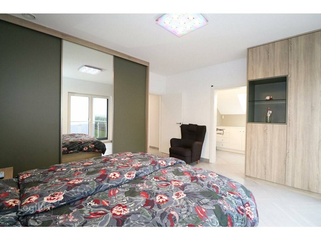 1er étage : Un hall de nuit, deux chambres à coucher, un bureau, une salle de bain et une suite parentale avec salle de douche privative et accès à un balcon. Toutes les chambres disposent de placards intégrés.