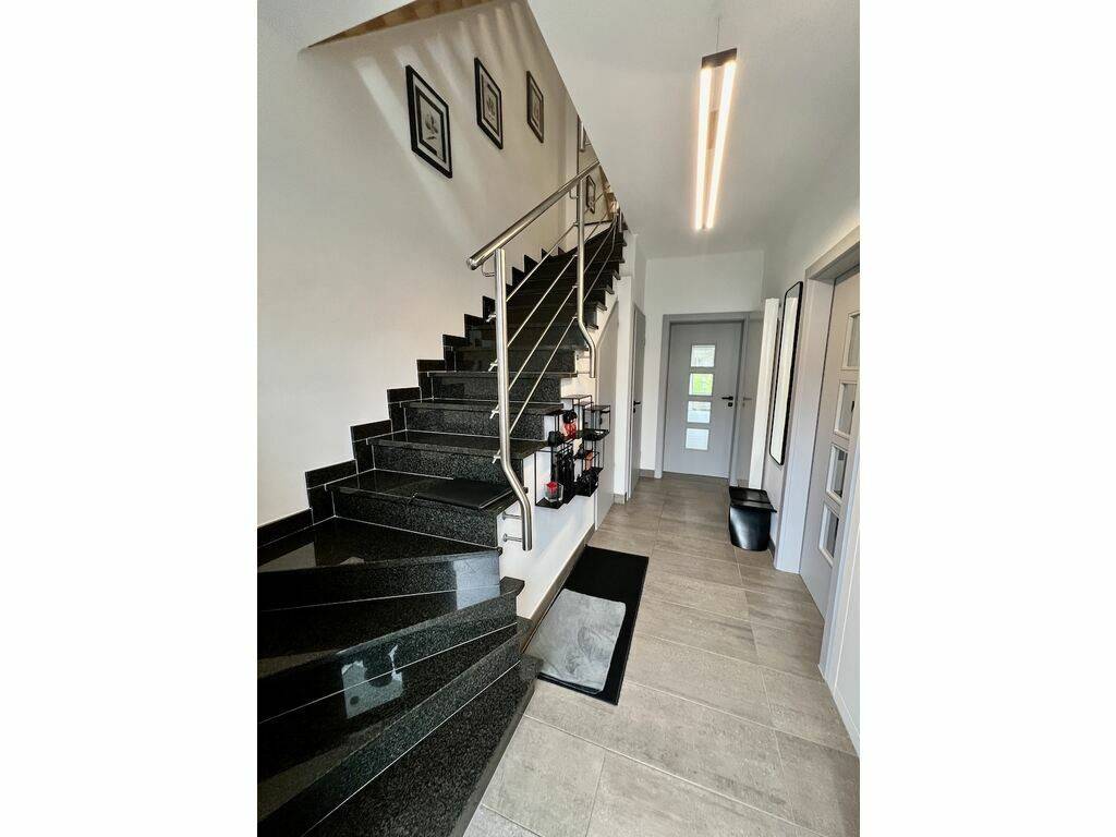 Concrete slabs, Gas heating via radiators (2004), Roof (Slate / insulated / Revision 2025), Electricity (2020), Facade (2014 / Walls 30cm), Sanitary (2020), Double glazing PVC with electric shutters (2014), Smoke detector, Fiber optic, Rainwater recovery, Integrated lighting.