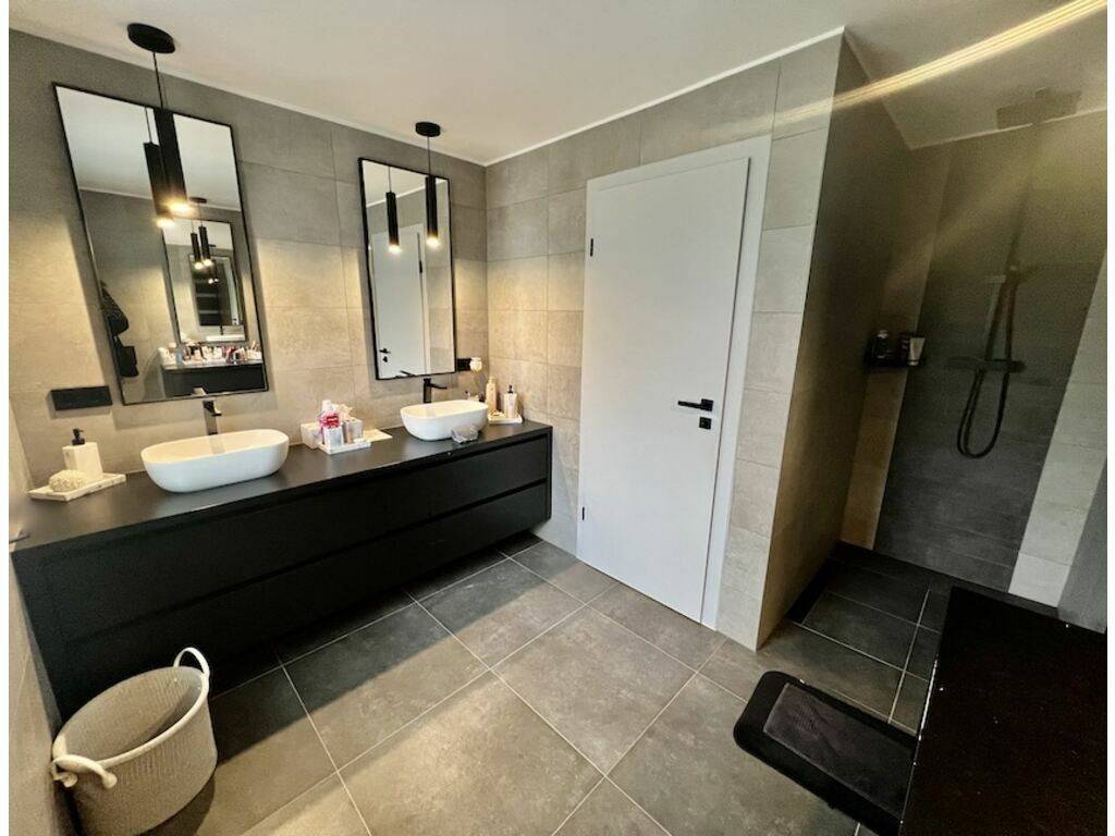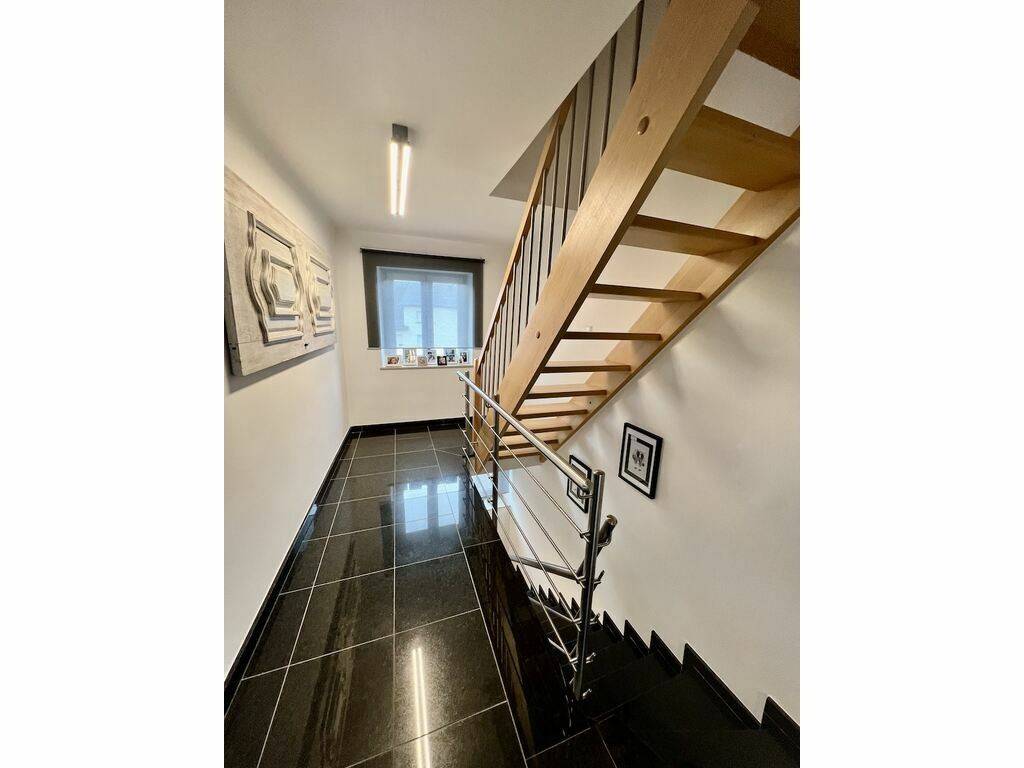 Entrance hall (+-5m2) with built-in wardrobes, Living room (+-50m2) leading to open equipped kitchen with dining room (2020 / Value €40,000) with built-in wardrobes and Living room leading to Terrace (+-80m2 / Northwest exposure) and enclosed Garden (+-3 ares), separate WC (+-2m2),