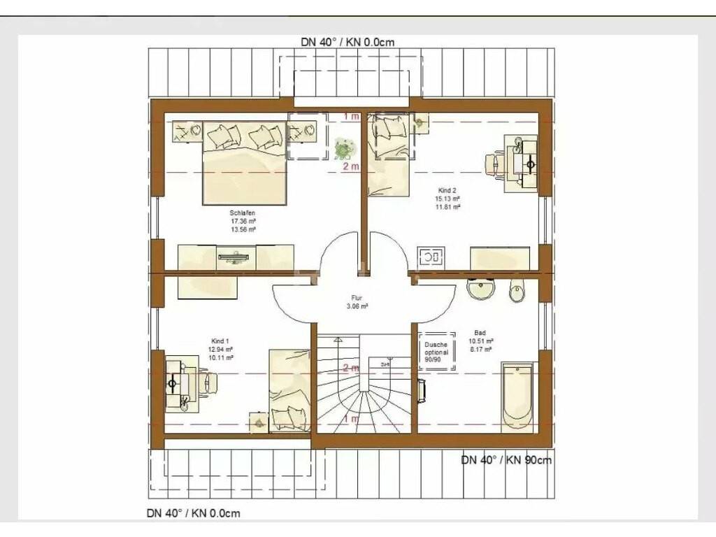 Thanks to the high (smooth) walls on the first floor, the attic can be transformed into a real living space. In addition to two children's bedrooms, a master bedroom and a bathroom, a dressing room harmoniously completes the first floor. Boulaide - Nature, calm and quality of life