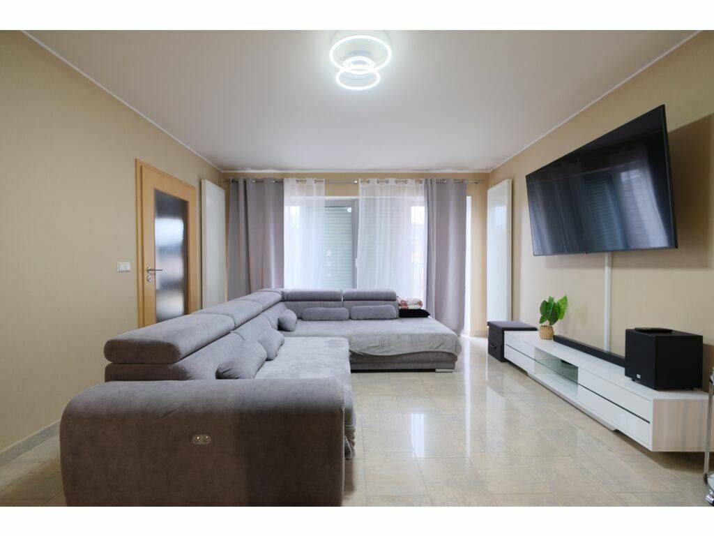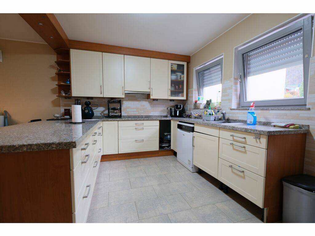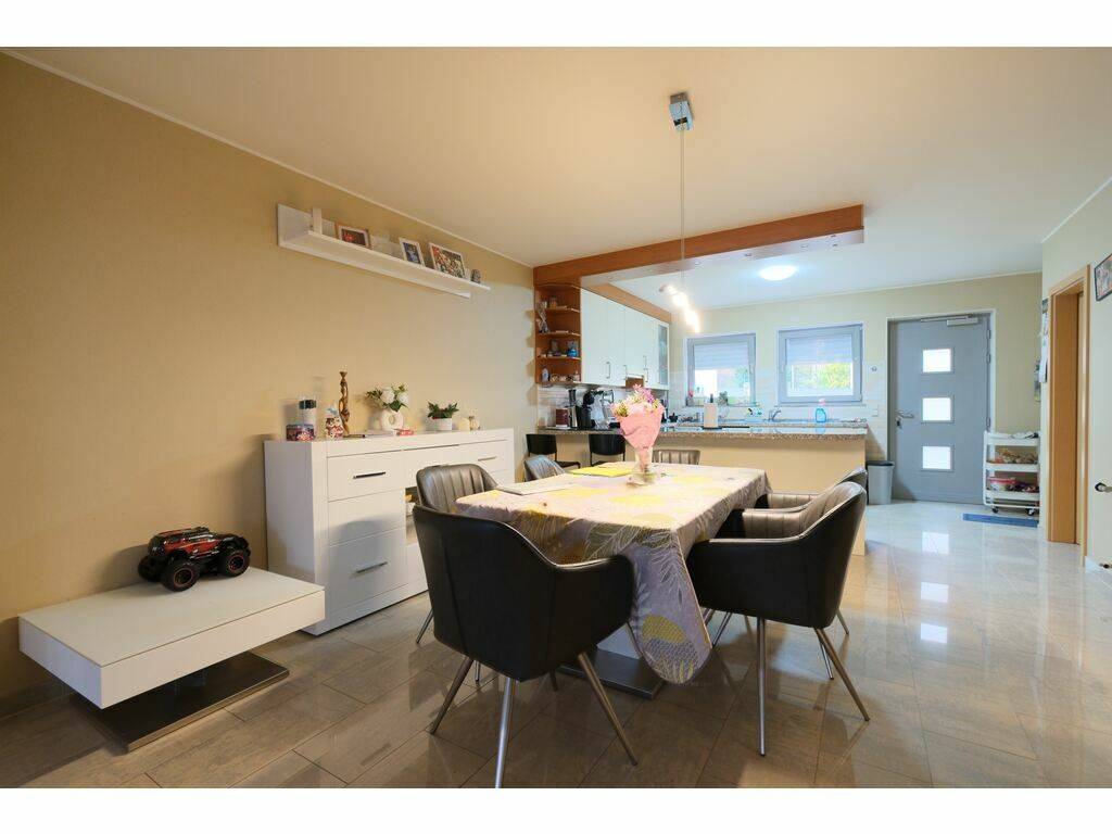 Rdch: Hall d'entrée, W.C. séparé, grand Living avec cuisine équipée de 50,75 m2 avec un débarras de 4,02 m2 et une sortie vers l'arrière de la maison;