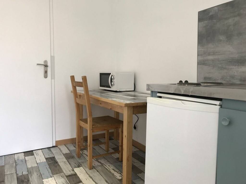 La pièce de vie comprend, un espace kitchenette (Plaque de cuisson et réfrigérateur bas).