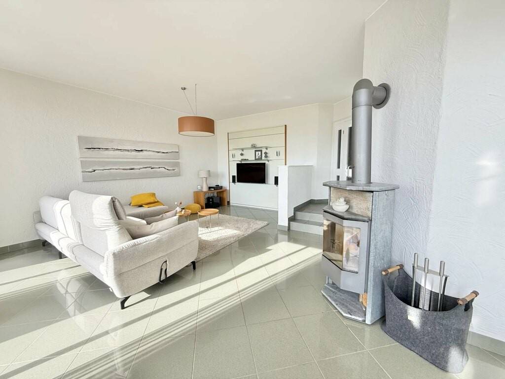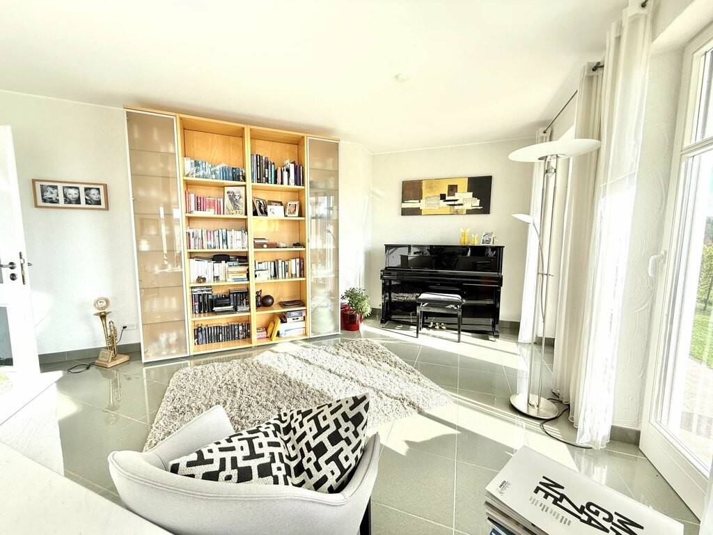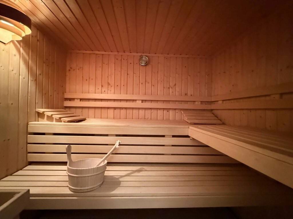 The property is distinguished by its top-of-the-range amenities, including a private sauna for privileged moments of relaxation. The bright living room opens onto a magnificent garden, perfect for outdoor entertaining or simply enjoying the tranquility of the surroundings.