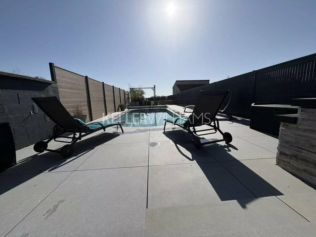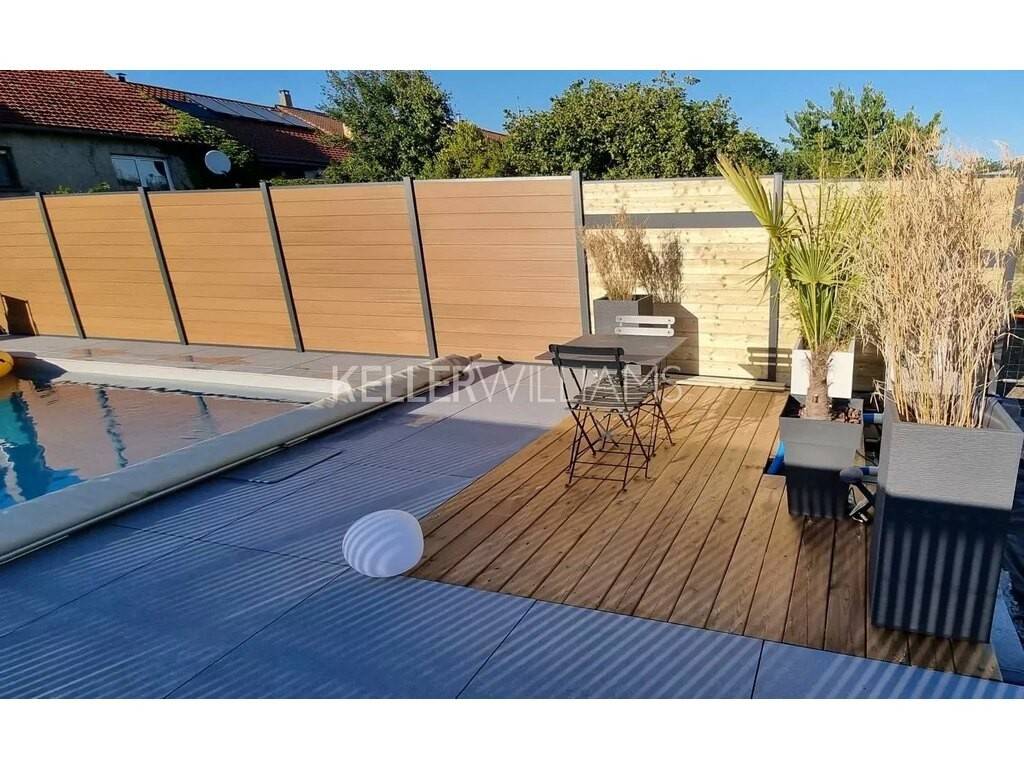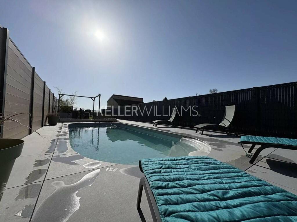 Chauffage au Sol, double vitrage, stores électriques, toiture en bon état, pompe à chaleur, isolation extérieur et intérieur. Vue arrière dégagée orientation plein SUD.