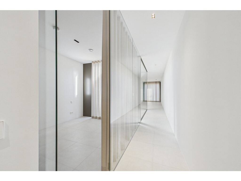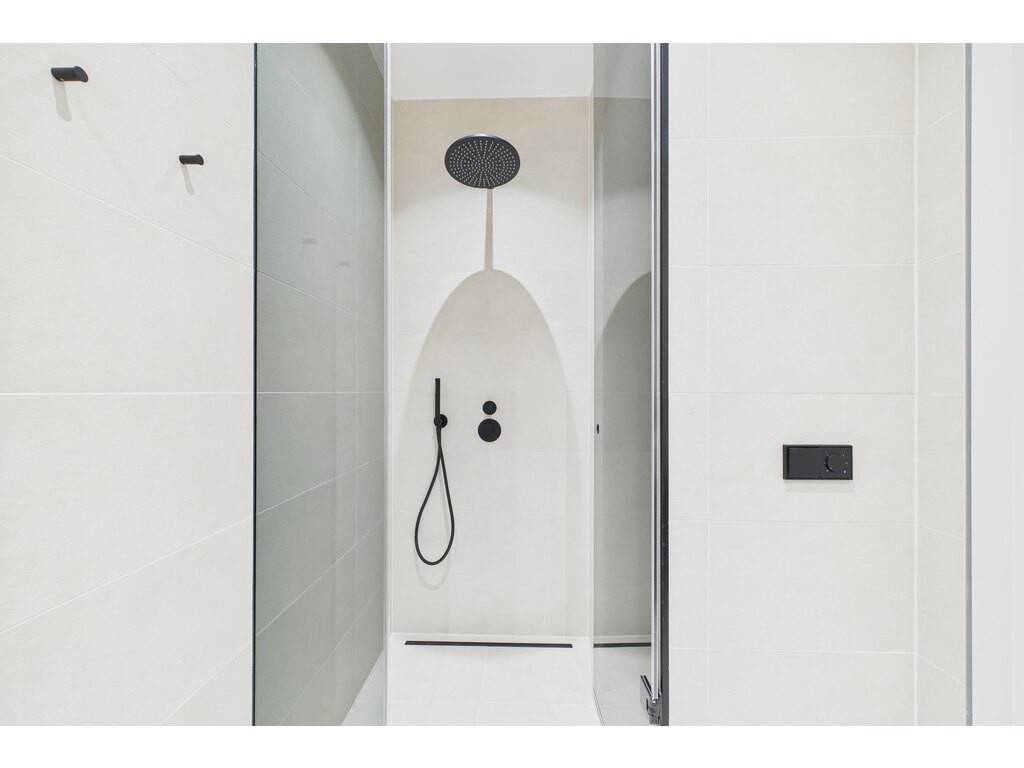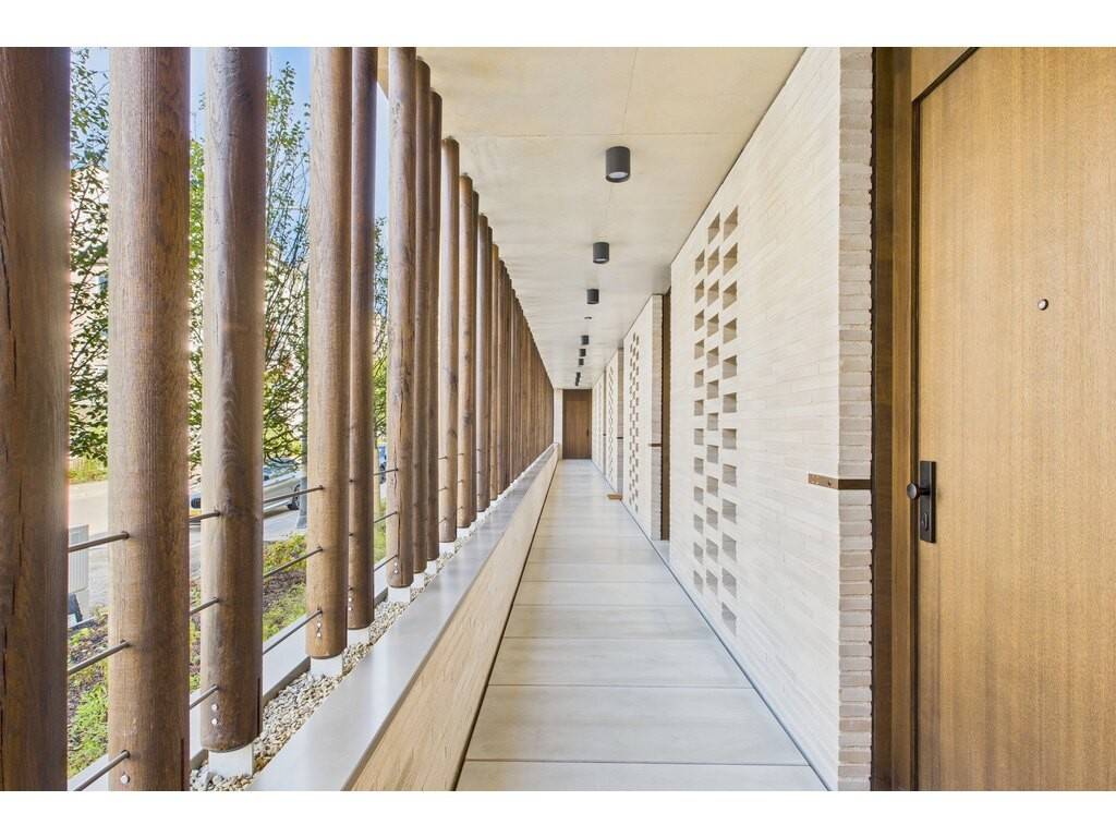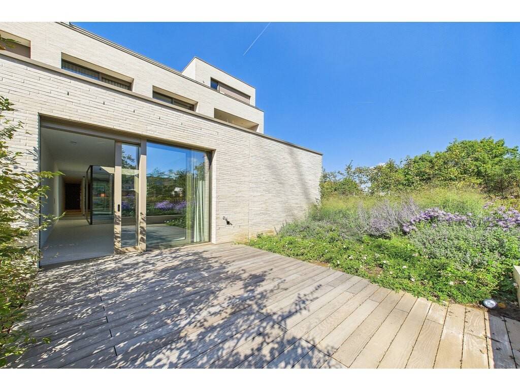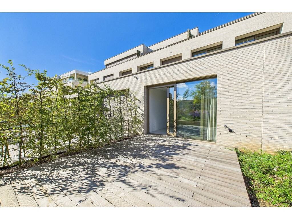 En détail: - Hall d'entrée (porte d'entrée magnétique sécurisée) avec dressing intégré - Living agréable ouvert sur la cuisine et accès terrasse - Cuisine entièrement équipée sur mesure - Terrasse de 20 m² disposant d'un robinet antigel bordée d'un jardin arboré - Patio en verre baigné de lumière naturelle - 2 chambres à coucher avec mur de verre et dressing sur mesure en bois plein - Salle de douche avec double vasque - WC séparé - Débarras