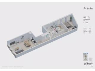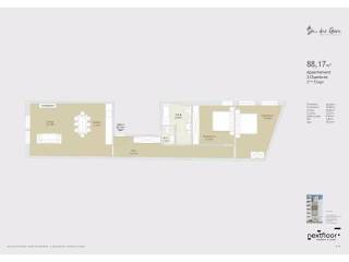 Apartment 02 has a surface area of 88 m2 and is composed as follows: