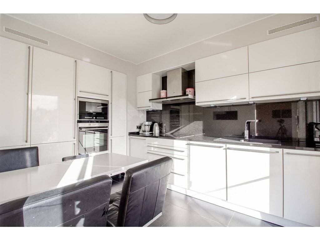Property layout on the first floor with lift : The apartment comprises a fully equipped separated kitchen A spacious living and dining area of 34 sqm with direct access to the south-west facing balcony Three bedrooms measuring 15.75 sqm, 12 sqm and 11 sqm A bathroom with corner bathtub of 6.70 sqm A shower room with WC of 5 sqm and a separate guest toilet.