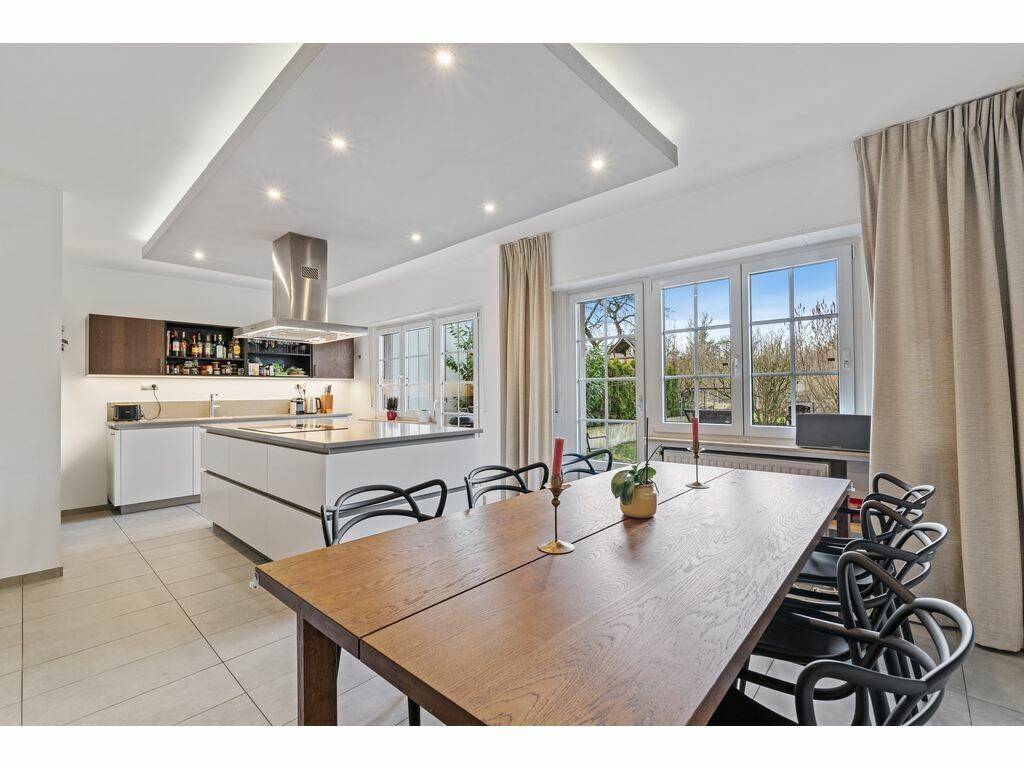 - Modern kitchen (27m2) with central island, functional, lit by a large bay window, fully equipped with appliances, and having direct access to the terrace (17m2) and garden.