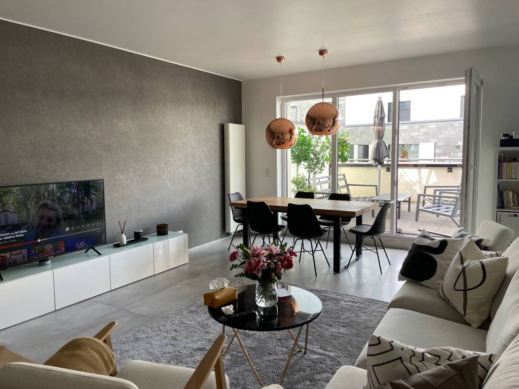 Bright 89 m² two-bedroom apartment with a large 60 m² west-facing terrace, located on the 3rd floor of a modern residence built in 2018 in the heart of Luxembourg-Gasperich, within walking distance of Cloche d'Or Shopping Center.