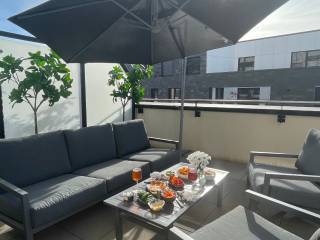 Property Features: -89 m² living space -3rd floor with elevator -Large 60 m² west-facing terrace -Entrance hall with secure door and video intercom -Separate guest WC -Fully equipped modern kitchen open to the living room -Bright living and dining area with large windows -Two bedrooms with parquet flooring -Walk-in Italian-style shower room with WC -Triple-glazed windows -Electric blinds -Double-flow ventilation system (VMC) -Secure underground parking space -Private cellar -Shared laundry room