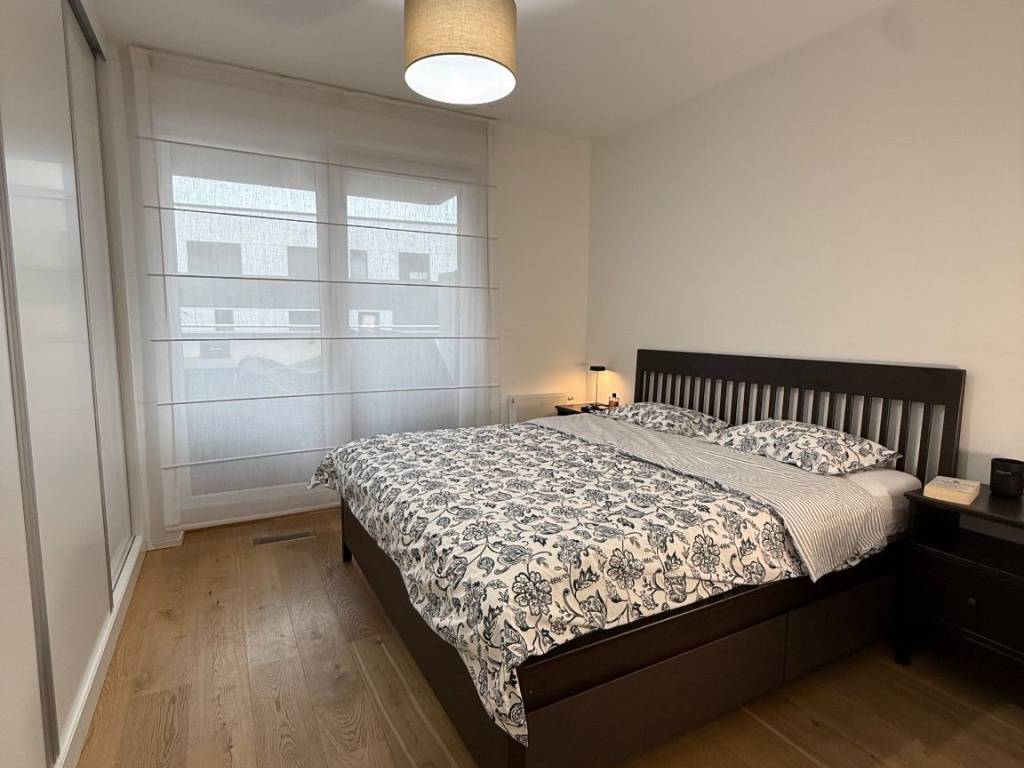 The apartment offers generous natural light thanks to large triple-glazed windows and high-quality finishes throughout.
