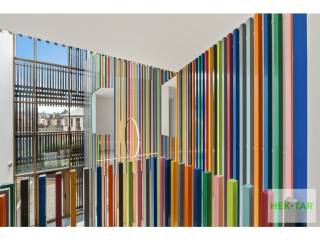 • Jalousies textiles pour chaque fenêtre et luminaires modernes installés dans les pièces de vie