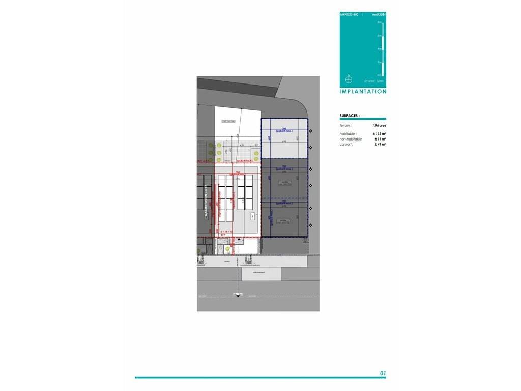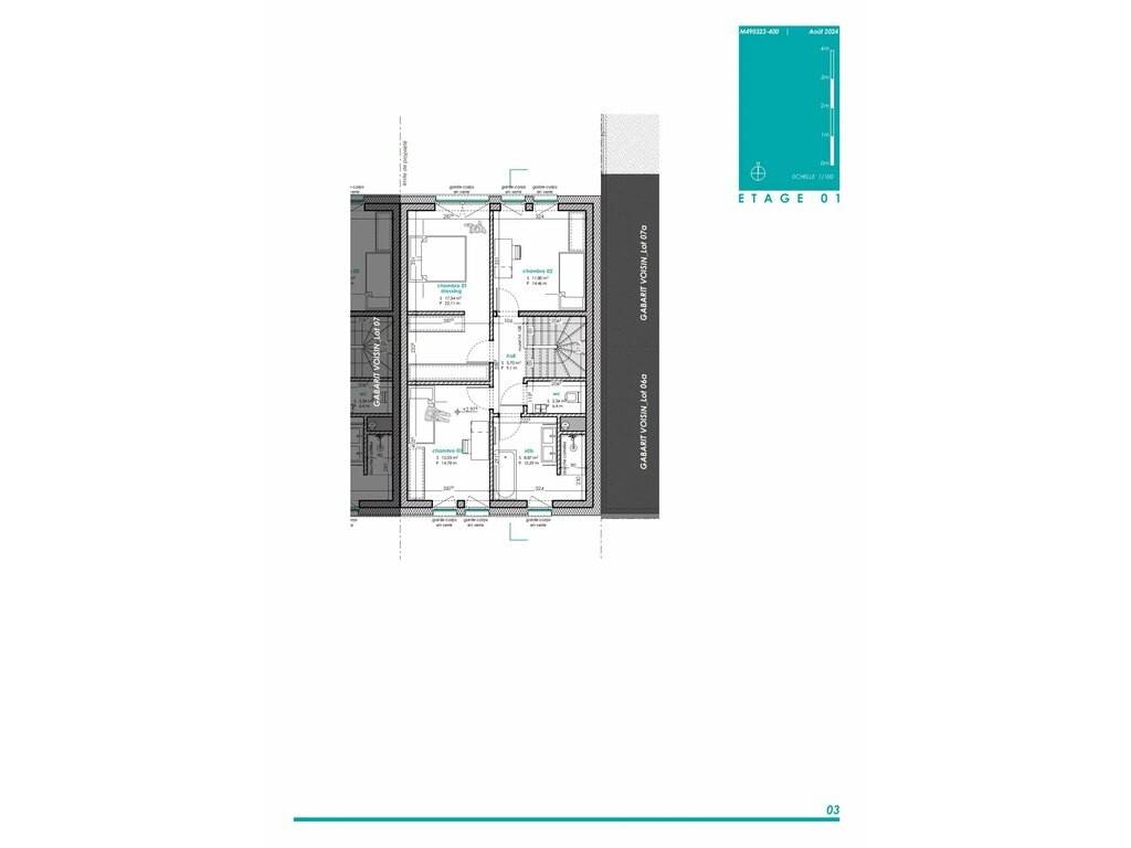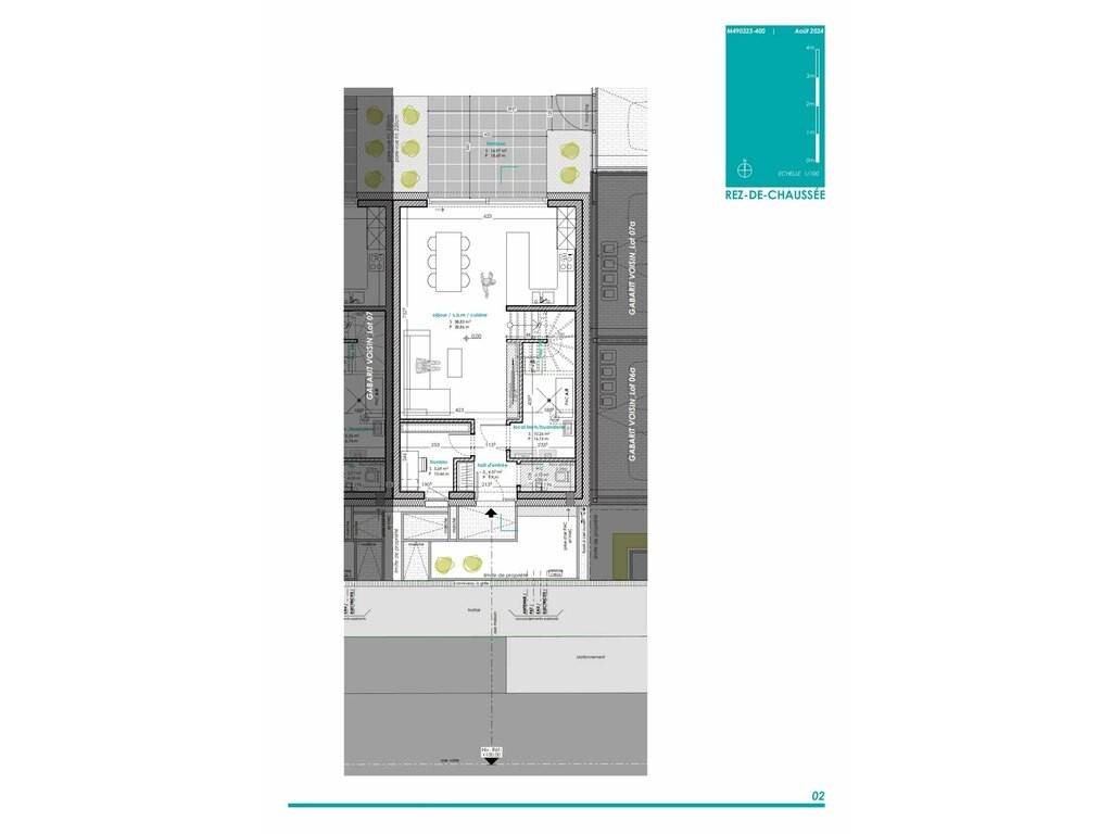 LOT 08: maison unifamiliale en bande sur un terrain de 1,96 ares avec une surface habitable de +/- 113 m2 et une surface totale de +/-124m2 comprenant: