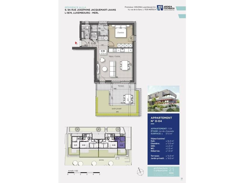 Apartment 0-04 of 56.95m2 is composed as follows: