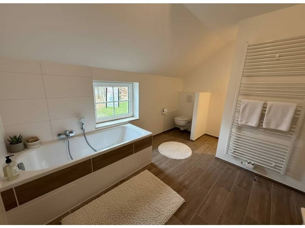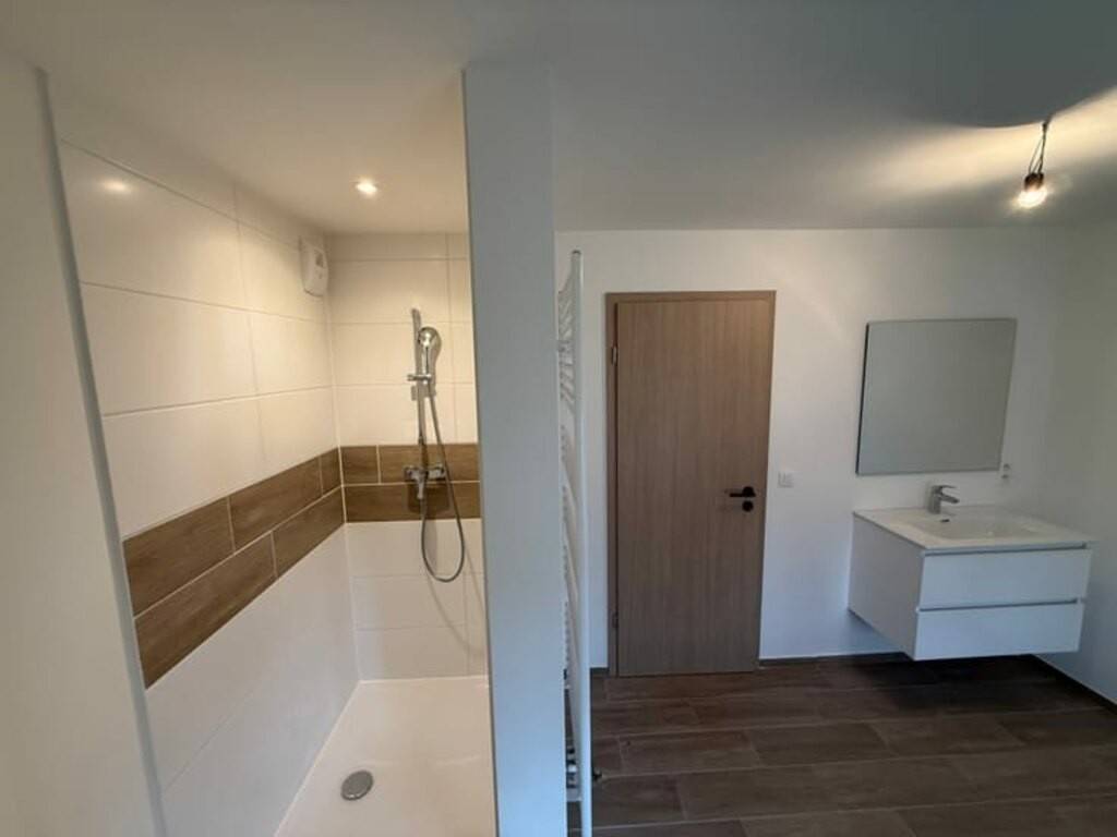 - Salle de bains complète avec douche, baignoire, meuble lavabo et WC
