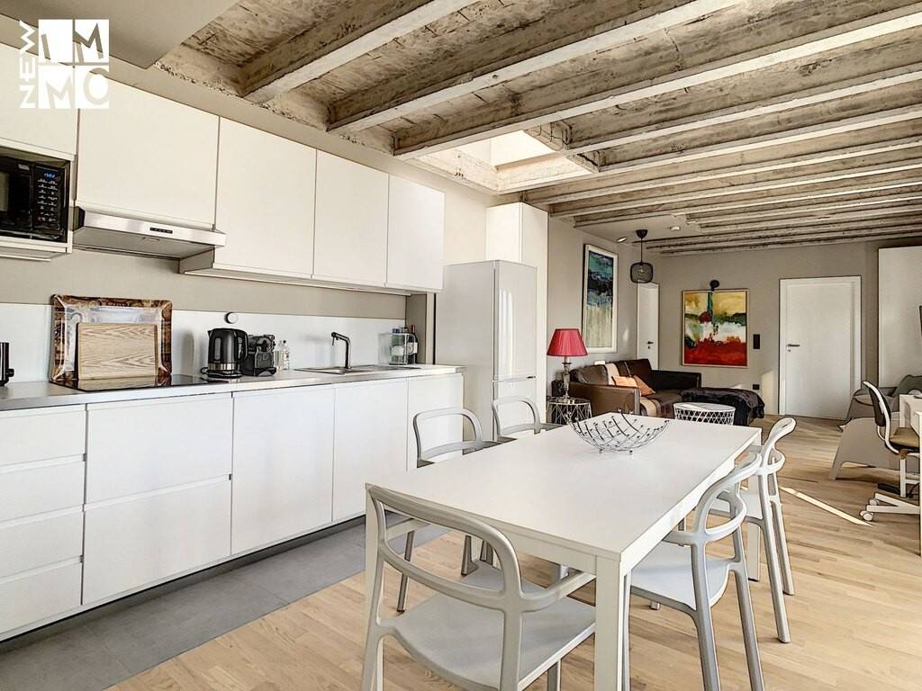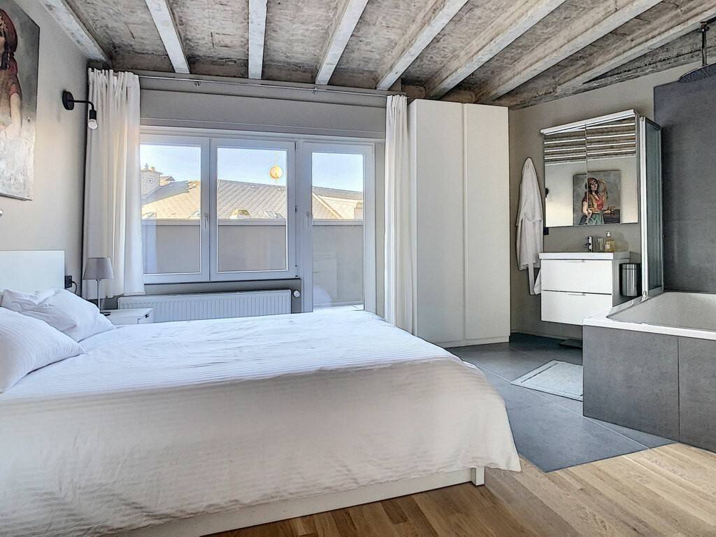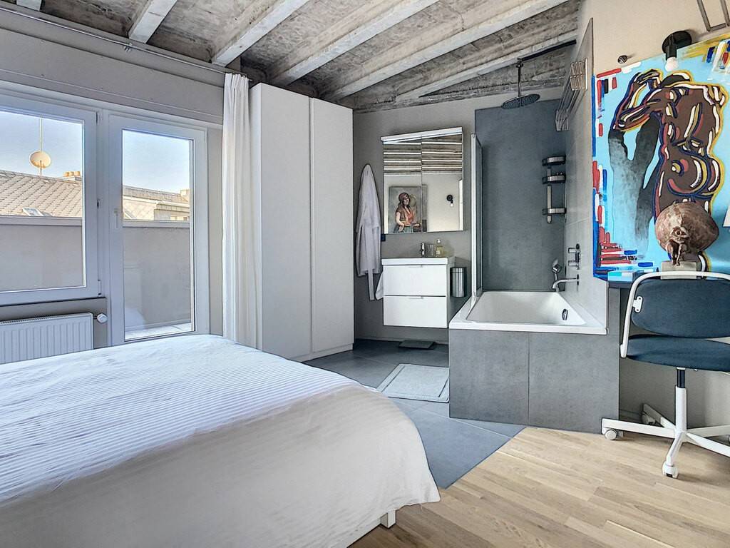 Ce très bel objet au 4ème étage d'une résidence entièrement rénovée est composé comme suit : vaste living avec cuisine équipée ouverte et accès grand balcon, 1 chambre à coucher avec salle de douche privative, 1 chambre avec salle de bain privative, WC d'invités.