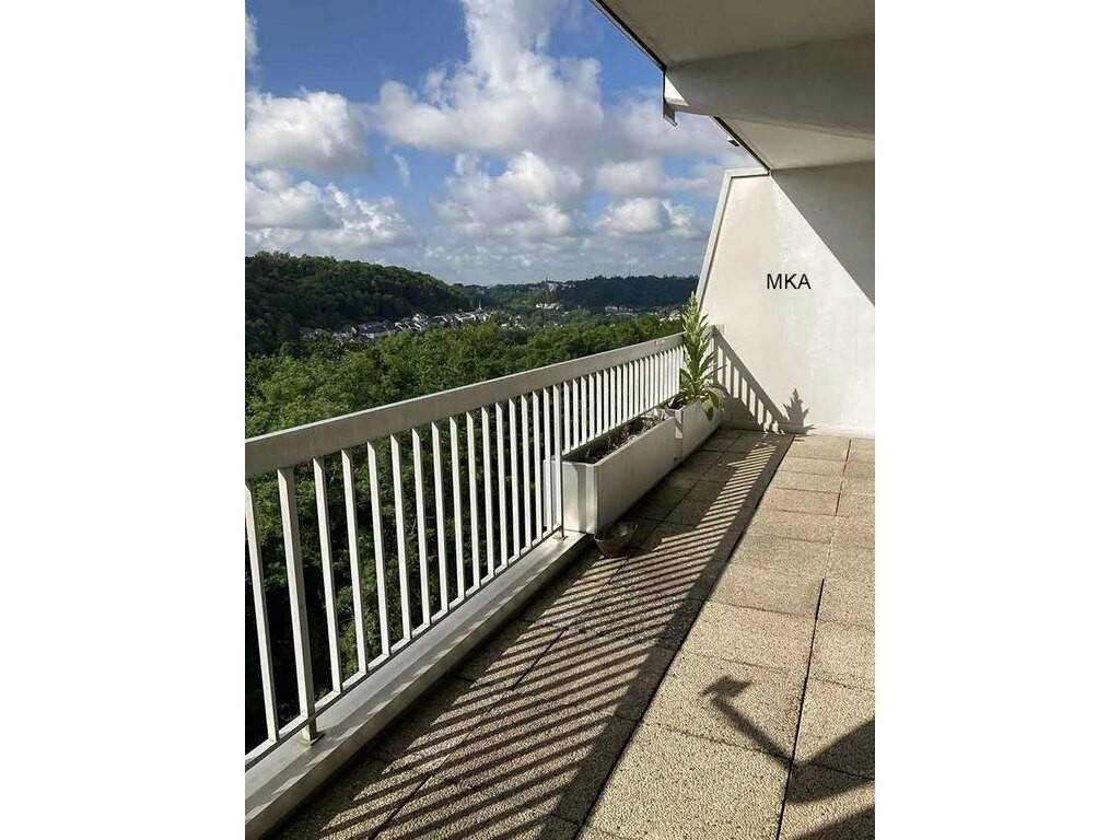 hall d’entrée avec placard encastré grand séjour en L avec une cuisine équipée ouverte et accès à une grande terrasse (20m2) orientée sud 3 chambres à coucher 1 salle de bains avec WC, baignoire, double lavabo et machine lave-linge et sèche-linge 1 salle de douche avec WC et lavabo Cave Garage fermé extérieur pour une voiture Fibre optique A proximité : arrêt de bus pour le plateau de Kirchberg et le Centre Ville devant la résidence, commerce dans l’immeuble, piscine privative pour les résidents dans l’immeuble, forêt avec parcours fitness
