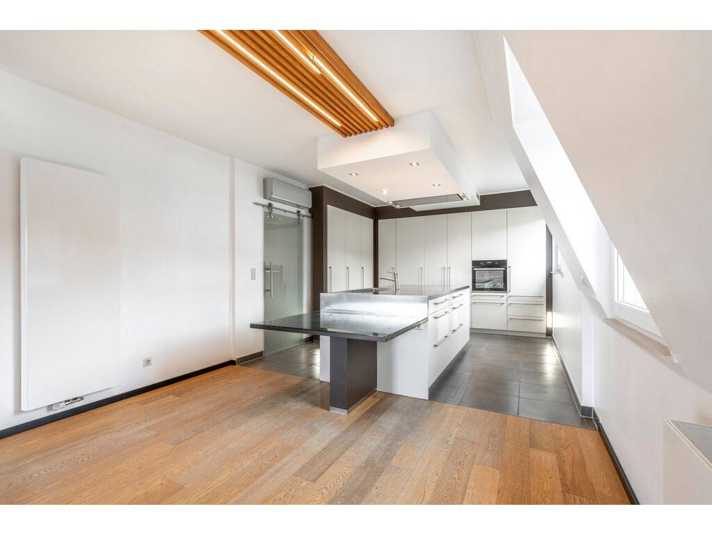 - L'immense séjour baigné de lumière constitue le cœur du duplex. Il s'ouvre sur une agréable terrasse d'environ 10 m² (± 3 x 3,5 m), idéale pour profiter des beaux jours.