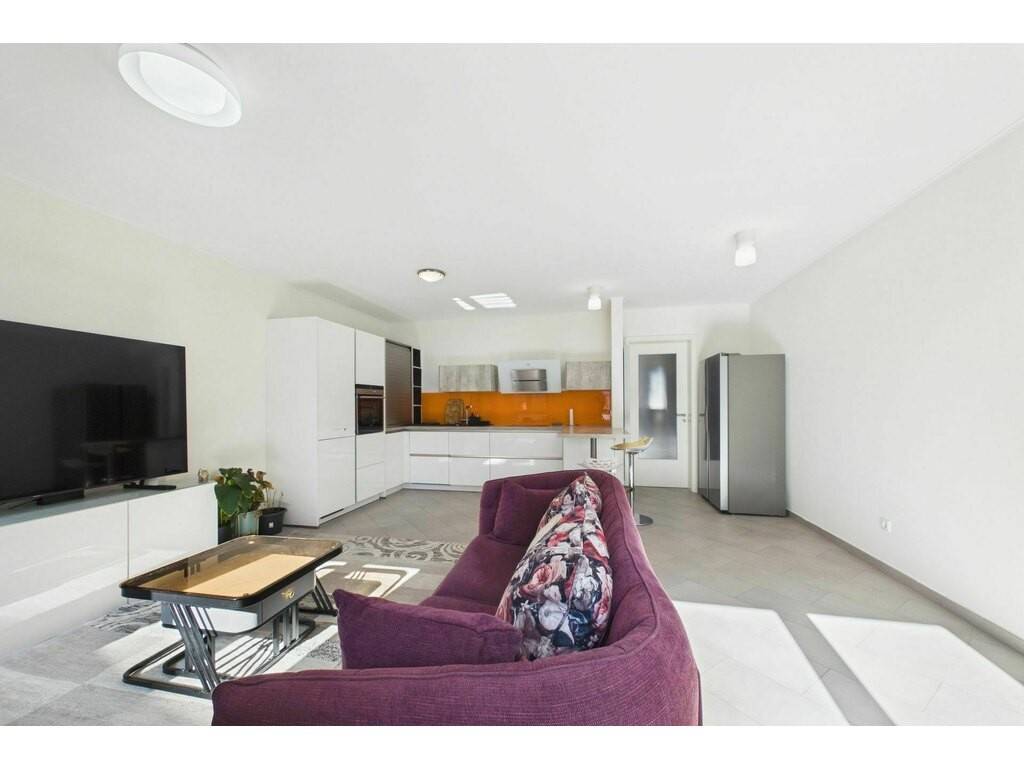 Distribution : - cuisine entièrement équipée ouverte sur le séjour (33 m²) - salle de douche (6,2 m²) - hall de nuit (6,1 m²) - 2 chambres (11,5 m² et 15,7 m²), toutes deux avec accès direct à la terrasse ainsi qu'à l'espace vert. Extérieur : terrasse (29 m²) + espace vert ( 86 m²) Inclus : 1 place de parking (14,8 m²) - 1 cave (4 m²)