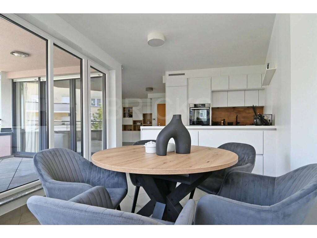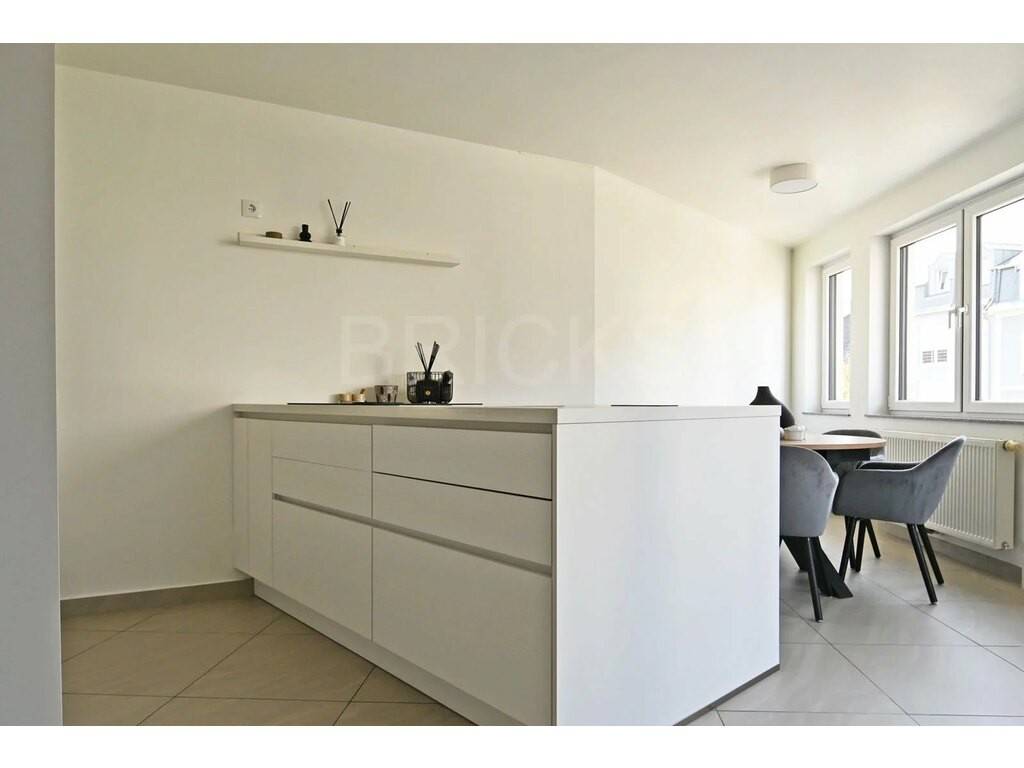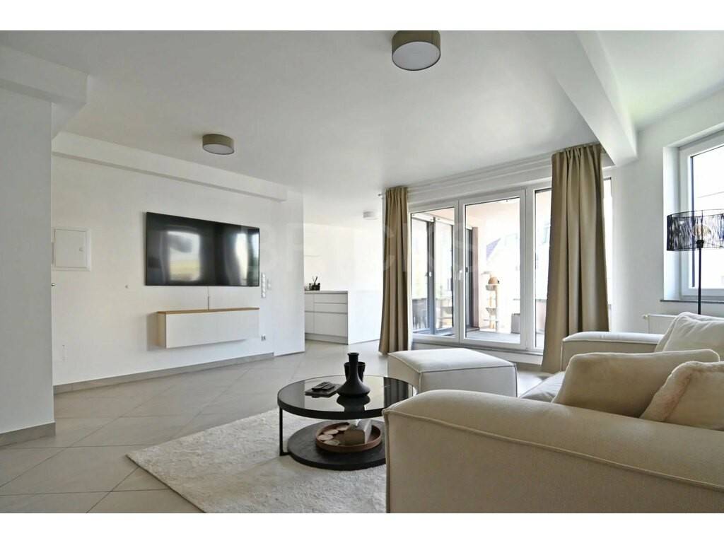 Situé au 1er étage d’une copropriété datant de 2009, ce bel appartement de 64 m2 habitables offre un vaste living très lumineux et une cuisine ouverte équipée haut de gamme (plaque à induction avec hotte intégrée de la marque BORA, le réfrigérateur et le lave-vaisselle de la marque SIEMENS et le four de la marque NEFF) avec un espace salle à manger, un vaste balcon de 8 m2 (orienté sud-est) accessible par le séjour et la cuisine, une spacieuse chambre à coucher, une salle de bains avec douche, lavabo et WC.