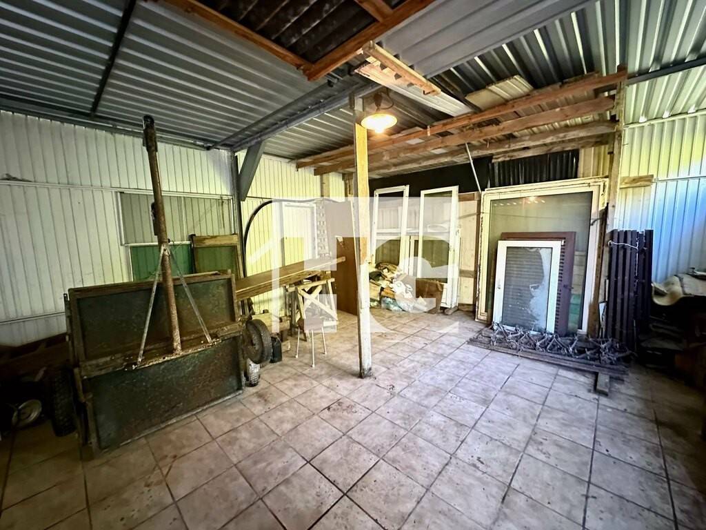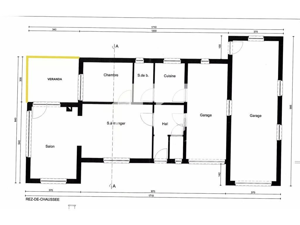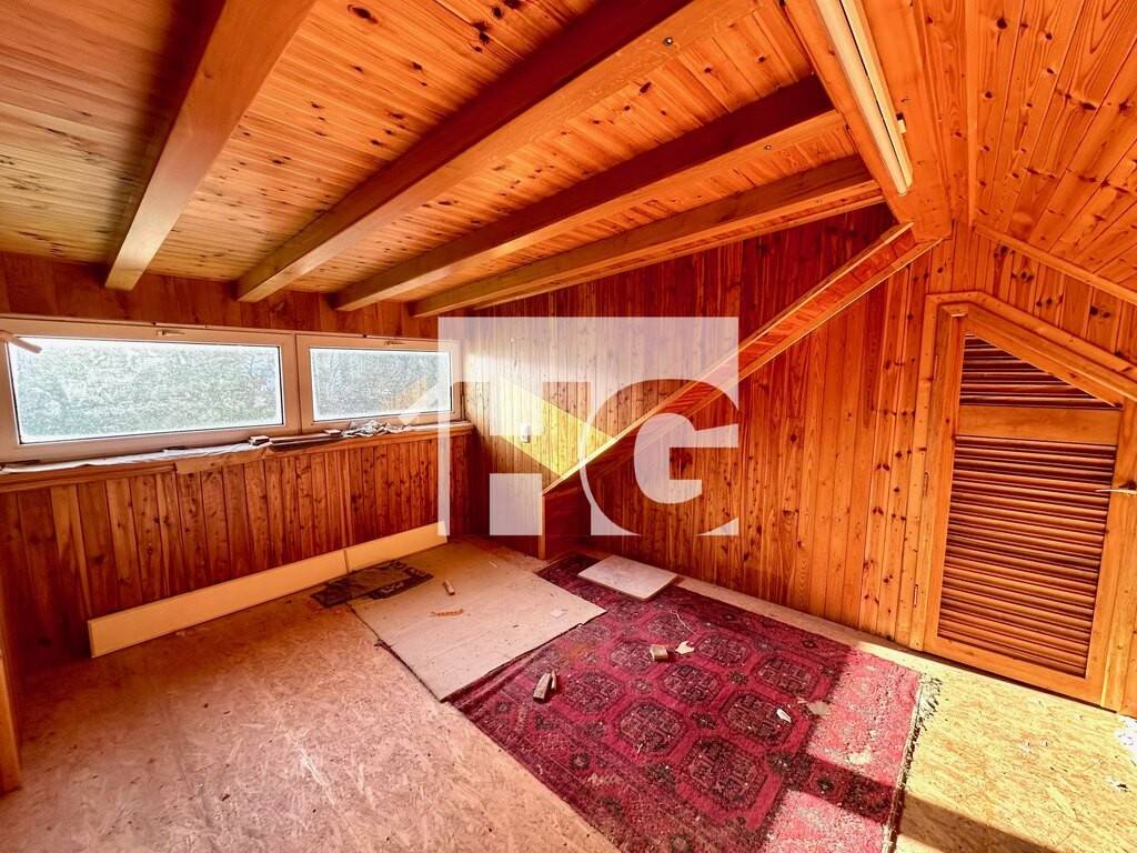 The current house consists of a living room, independent kitchen, veranda, bedroom, WC, and bathroom on the ground floor, as well as 2 additional rooms in the attic. 3 garages (2 attached to the house and a double garage in the garden, accessible by a driveway) complete this property.