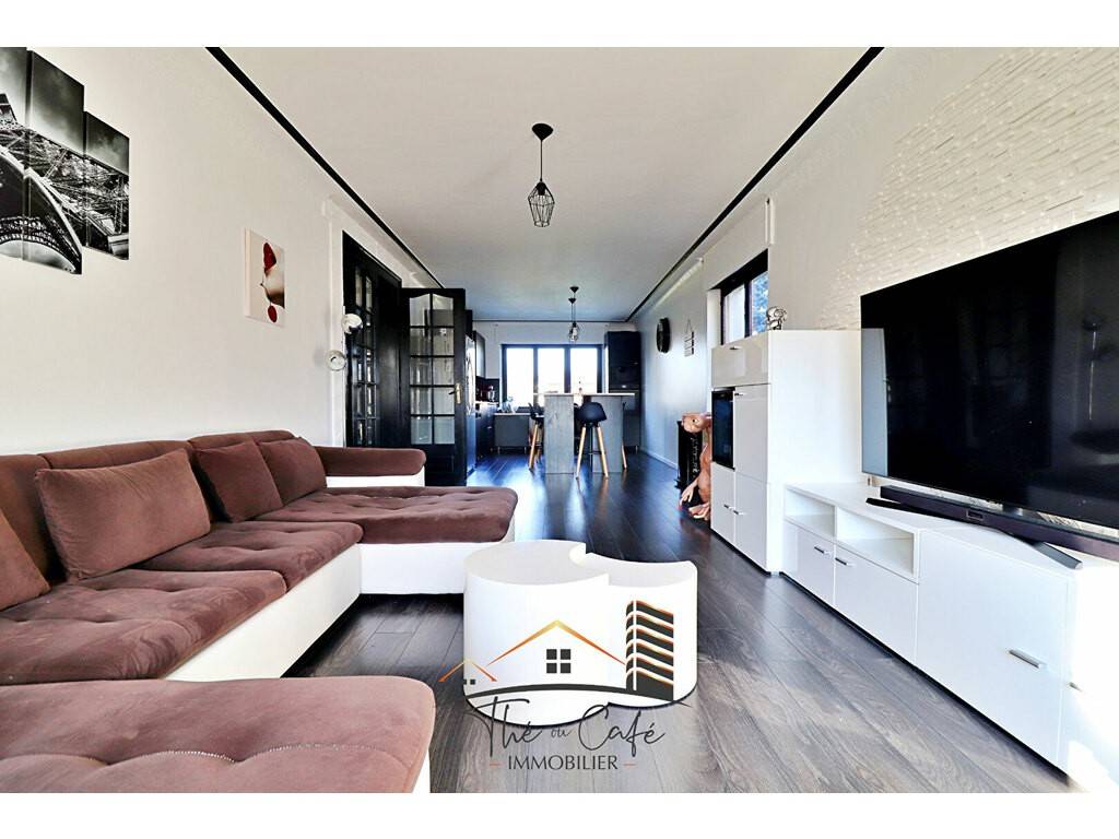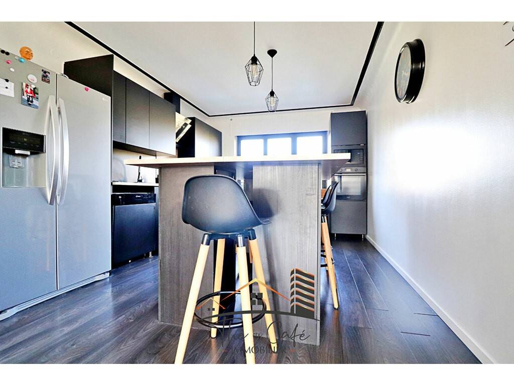 et un double séjour lumineux ouvert sur une cuisine américaine dinatoire.