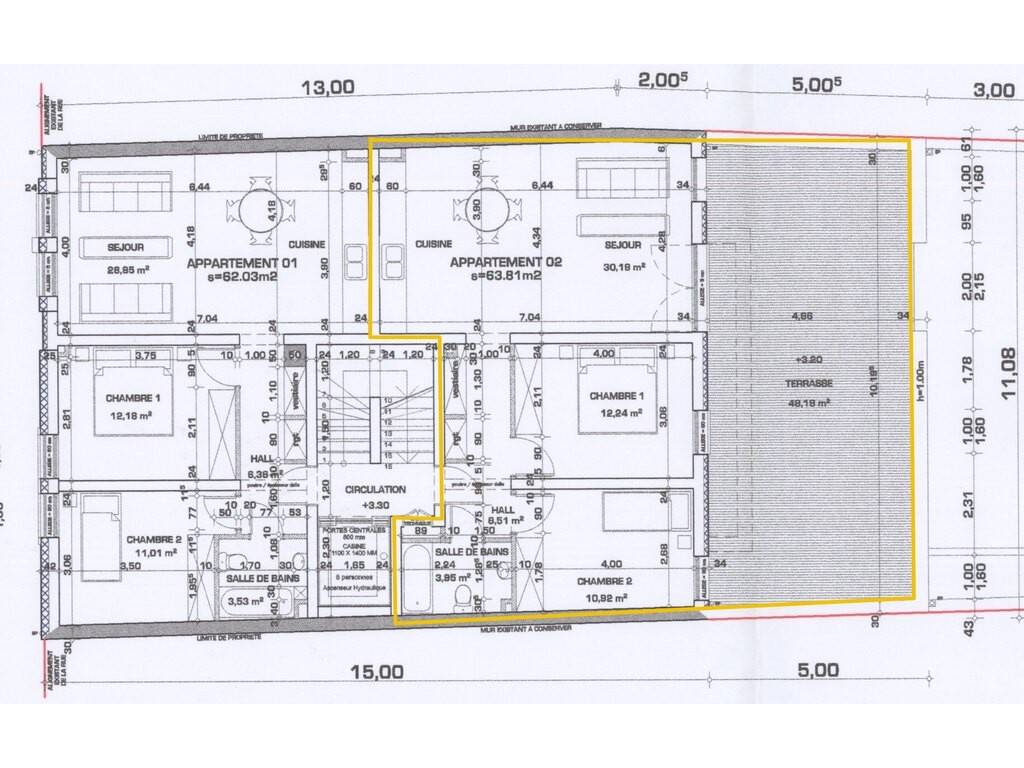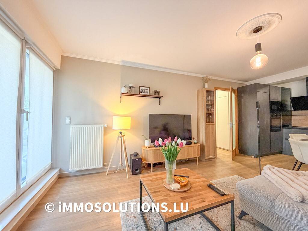 Appartement contemporain (2006) aux lignes épurées, situé au 1er étage d'une résidence soignée à Differdange, développant une surface habitable de ± 60 m² et prolongé par une remarquable terrasse d'environ 48 m², véritable extension de l'espace de vie.